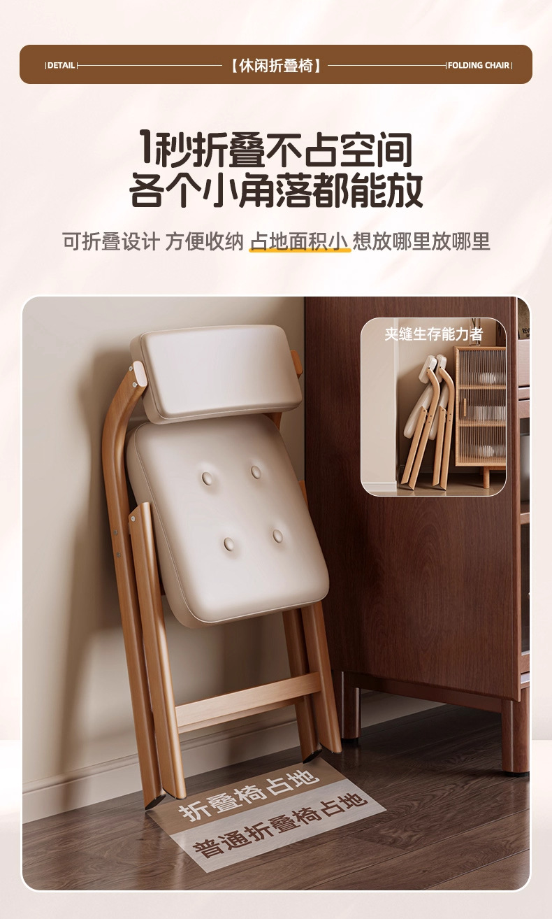 折りたたみ椅子、家庭用背もたれ、快適な座り心地の椅子、積み重ね可能なスツール、省スペースのレトロな無垢材のダイニングチェア