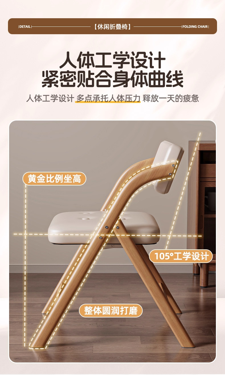 实木色折叠椅子凳子家用小户型餐桌椅麻将椅办公电脑椅便携靠背椅