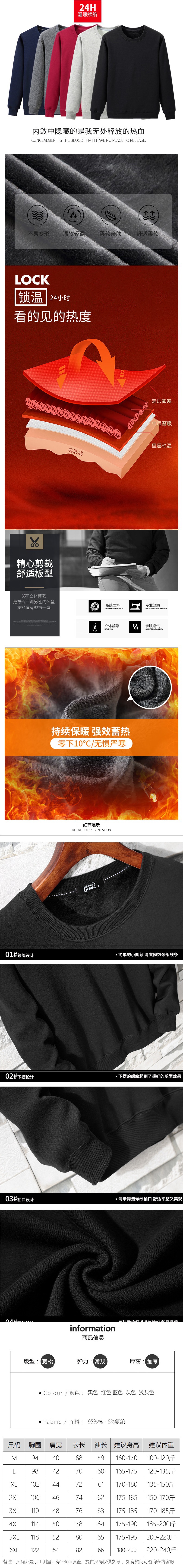 秋冬季男士加绒加厚保暖卫衣大码圆领套头长袖T恤带绒上衣打底衫