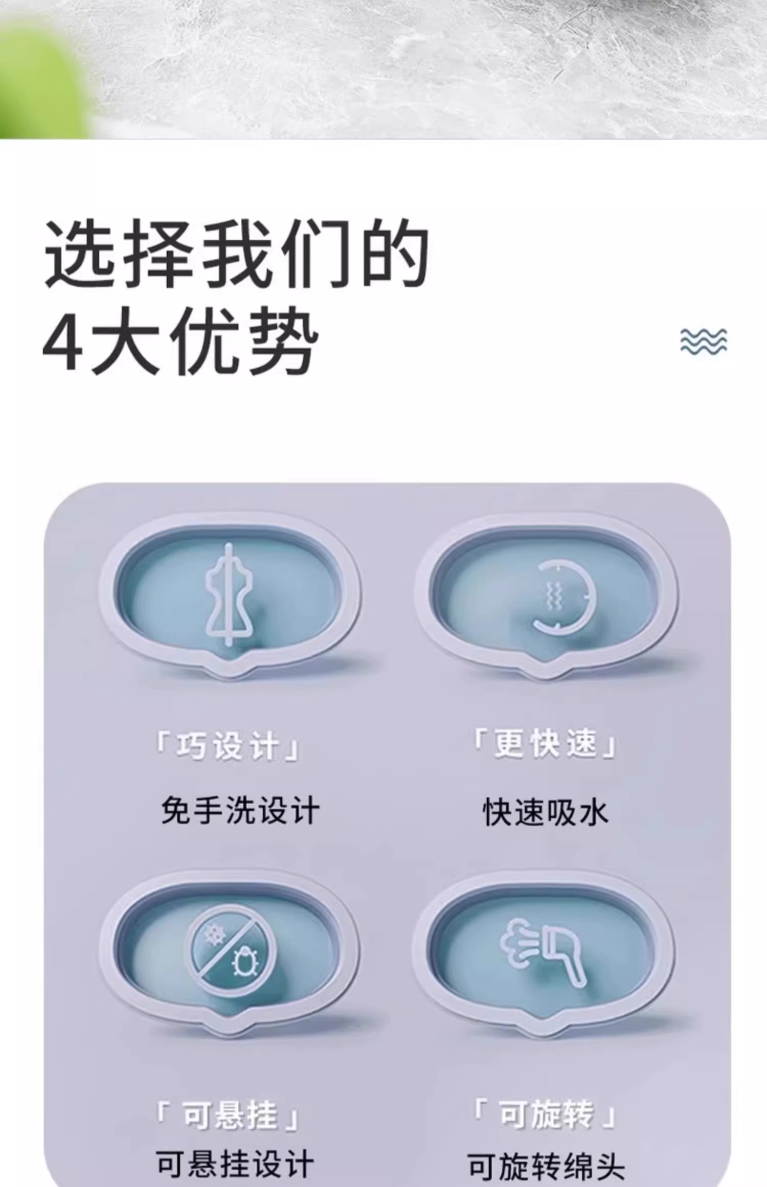 颜色分类 拖把棉头1个(强力吸水 去油去污),免手洗小拖把+盒装1个胶棉头
