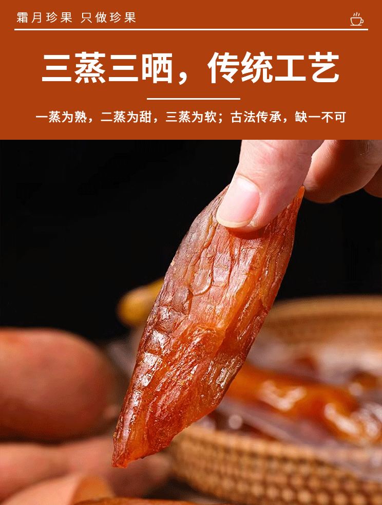 软糯香甜红瑶蜜薯干低脂代餐零食传统工艺整根带皮原味即食红薯干