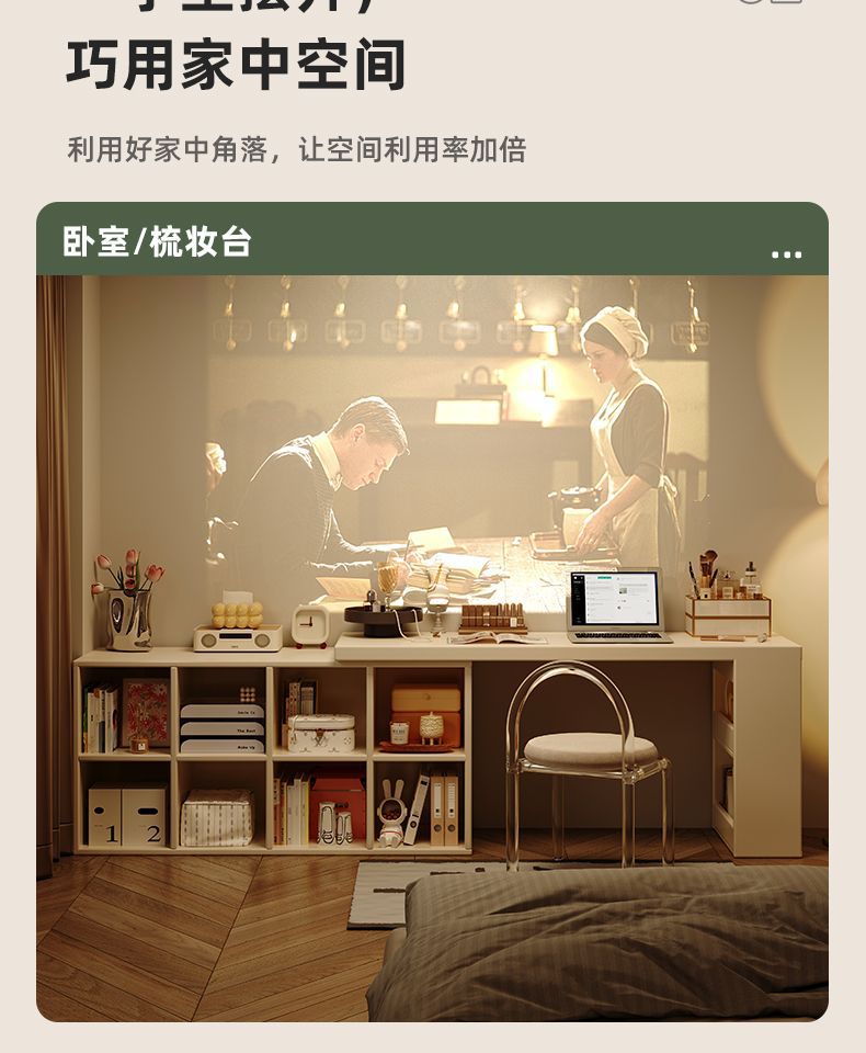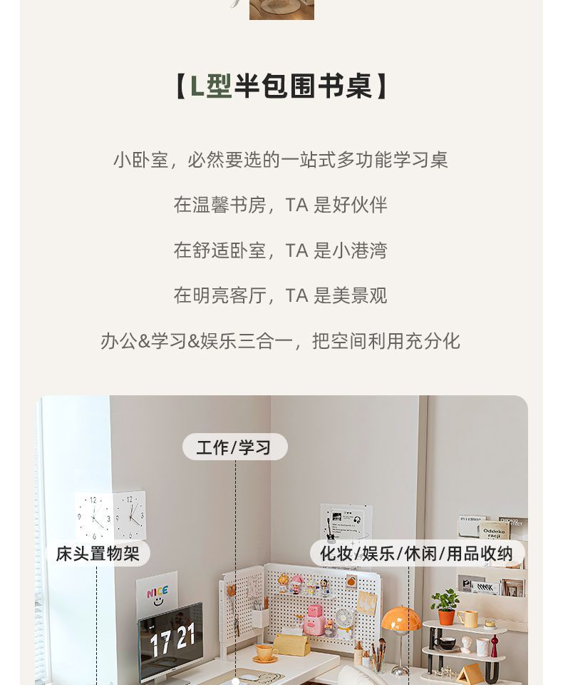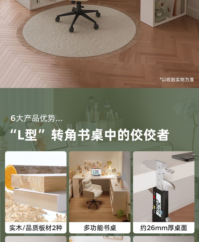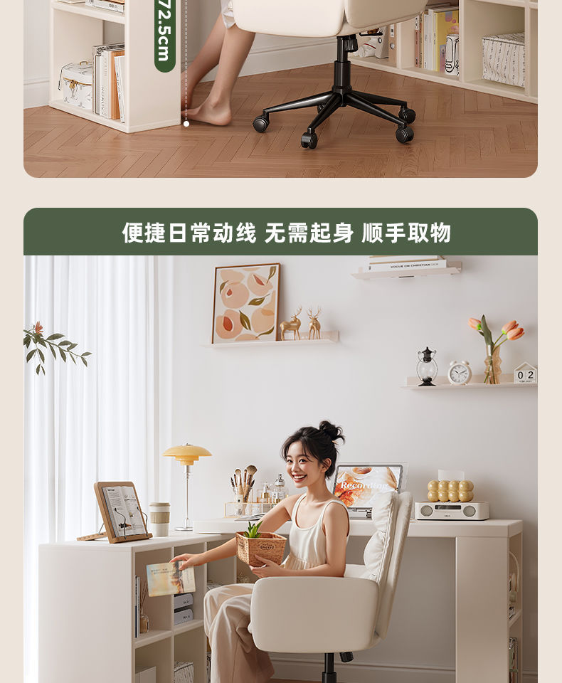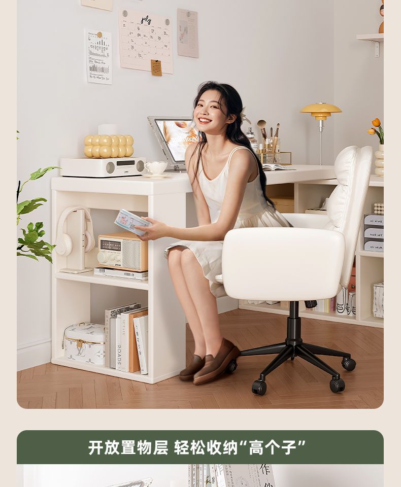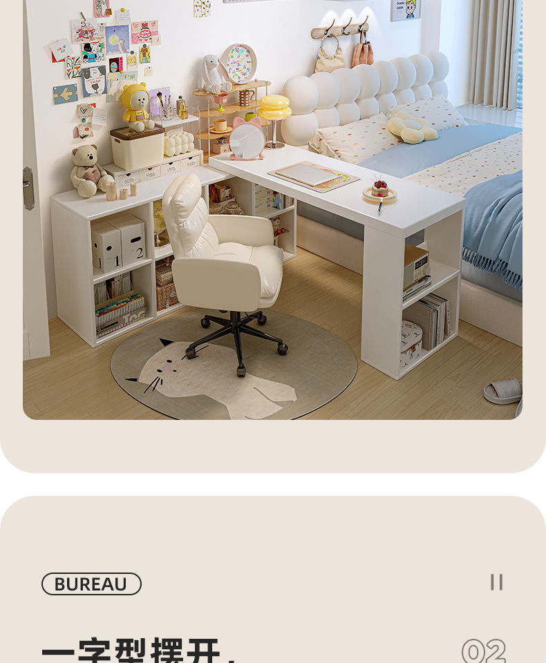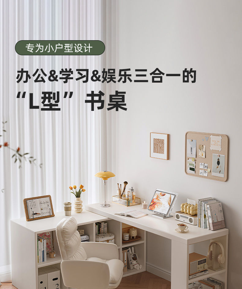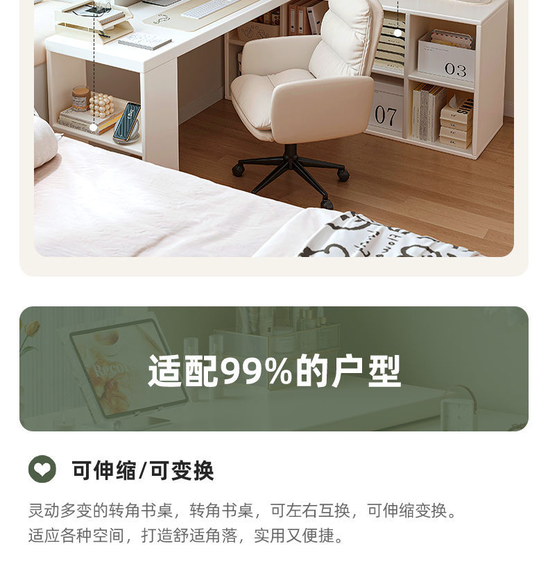 转角书桌卧室女生梳妆台斗柜一体桌L型拐角办公桌小户型奶油桌子