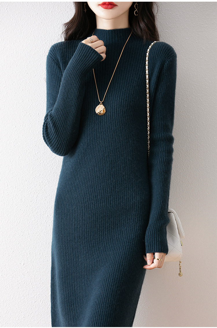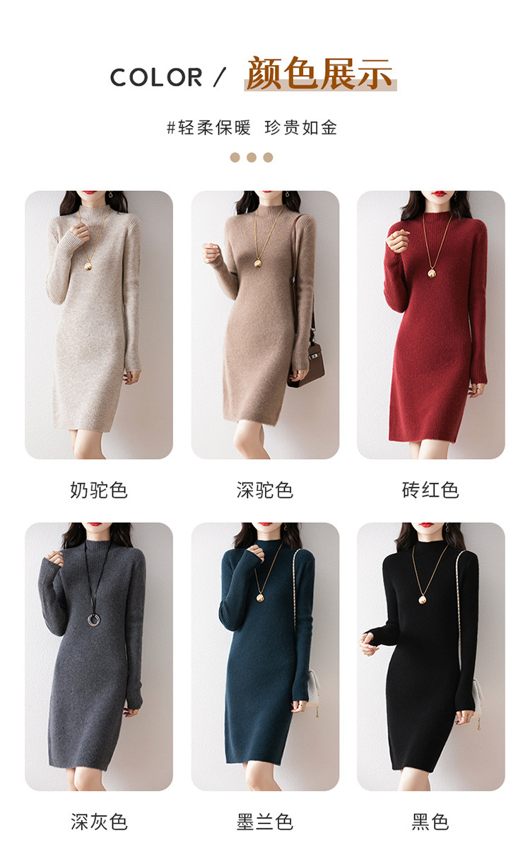 コートの中の長いニットの底のワンピースの女性の秋冬の新型の純色の半高襟の修身セーターのスカート