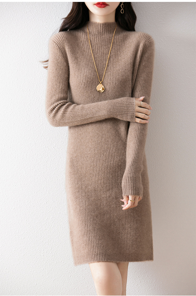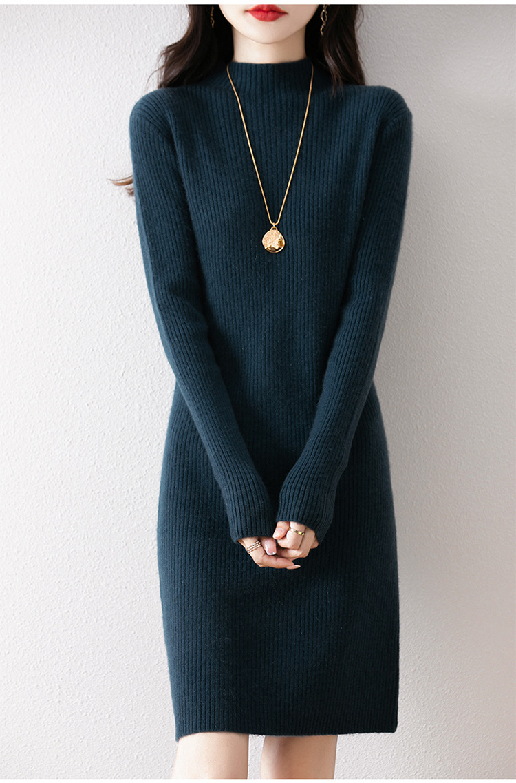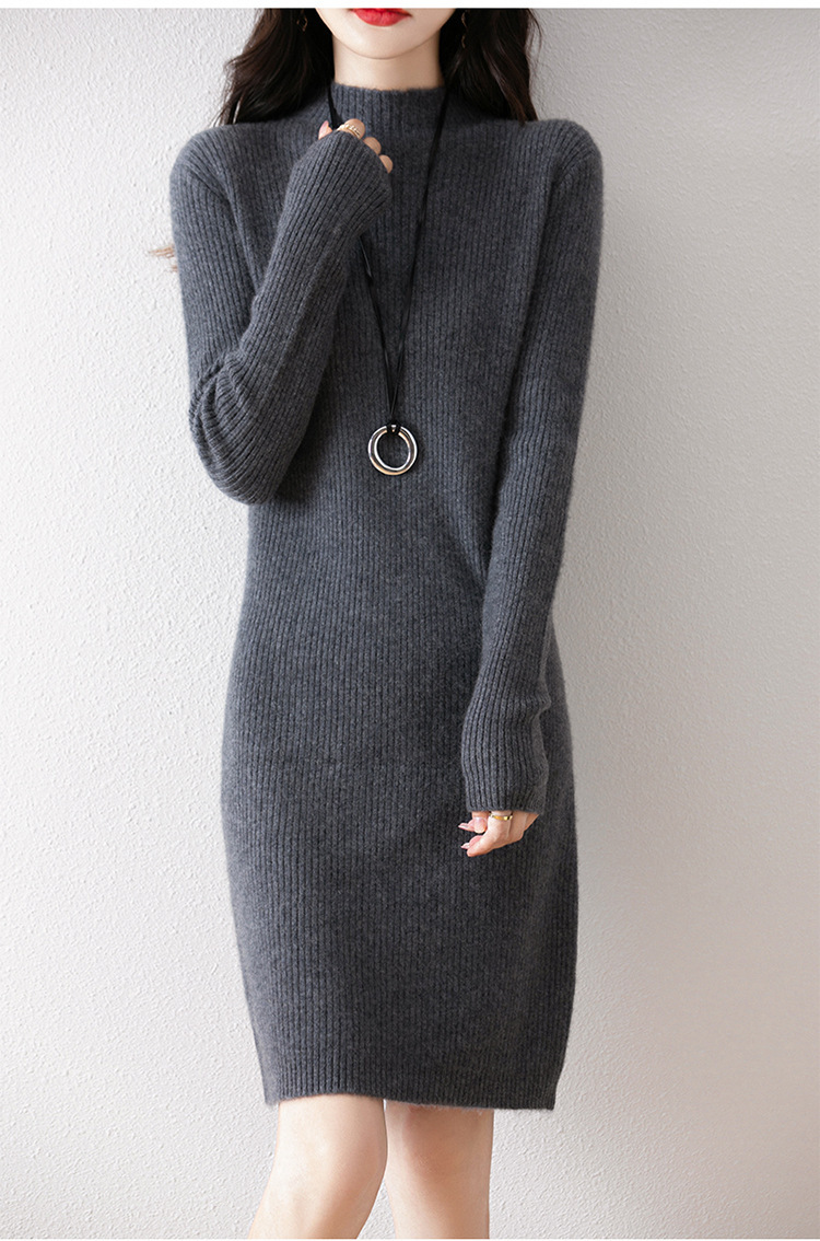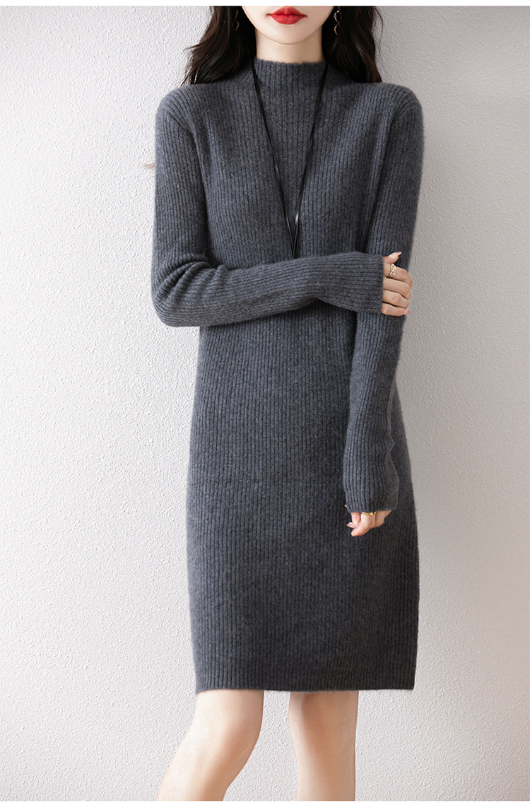 秋冬半高襟ニットワンピース女性の中長タイプのゆるいファッションセーターとコートウールのスカート