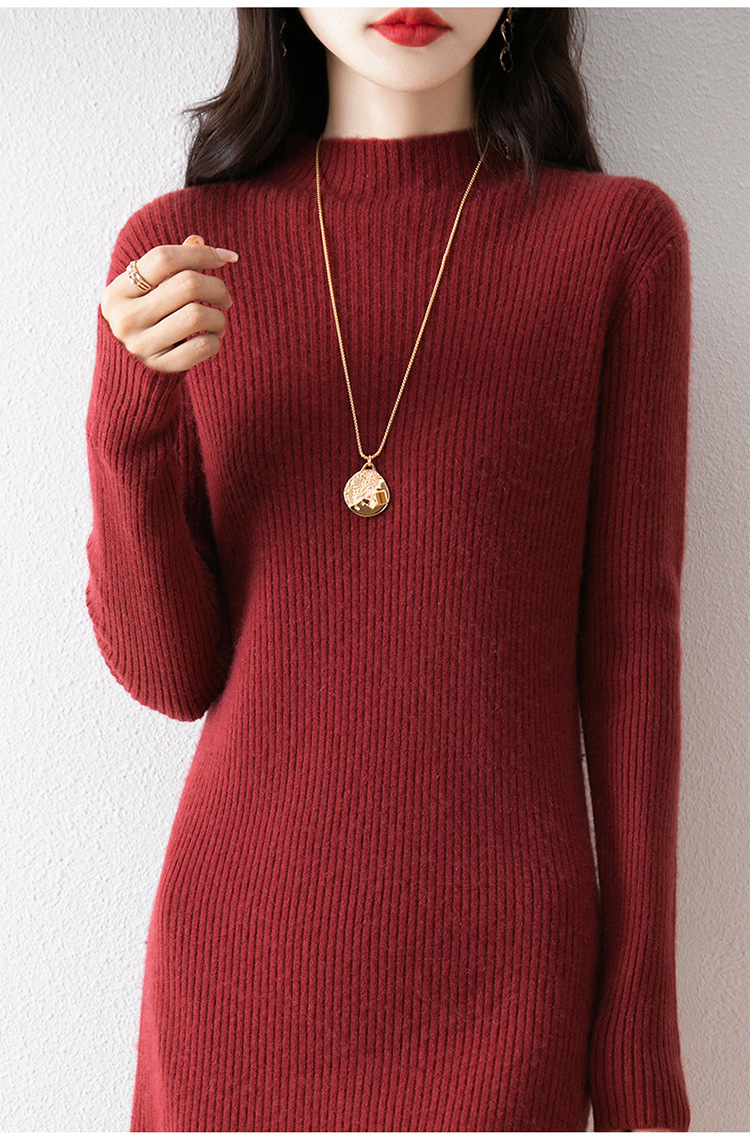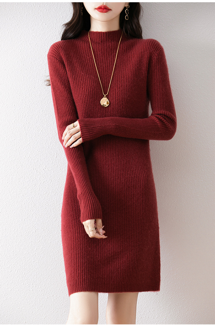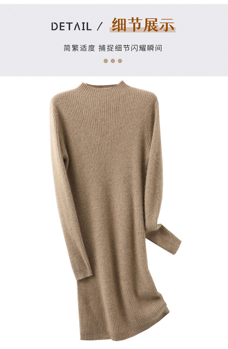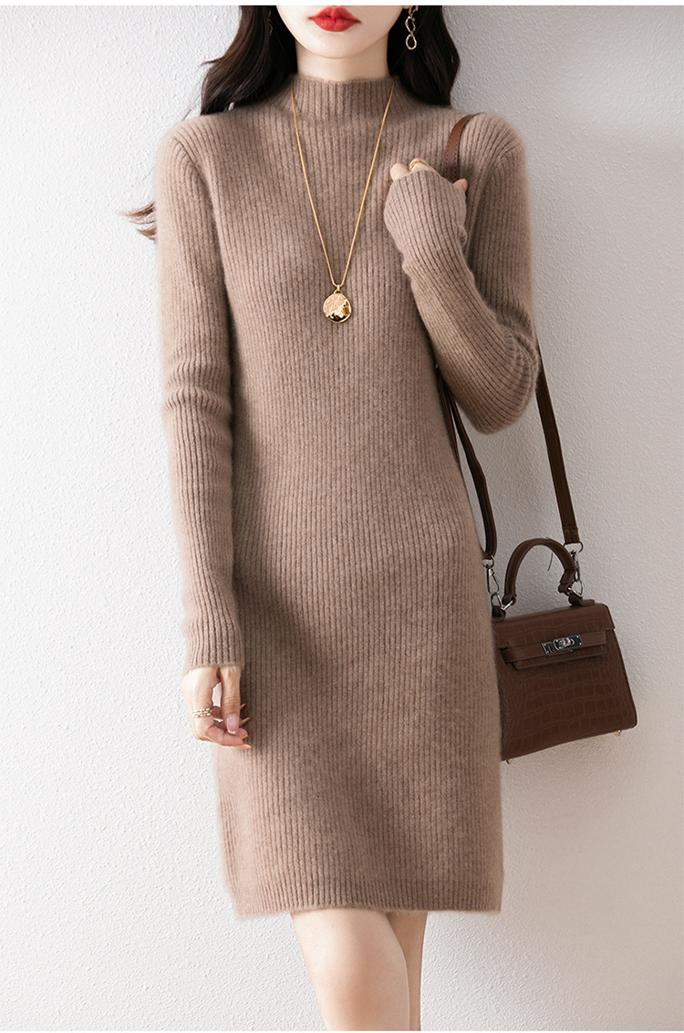 秋冬半高襟ニットワンピース女性の中長タイプのゆるいファッションセーターとコートウールのスカート