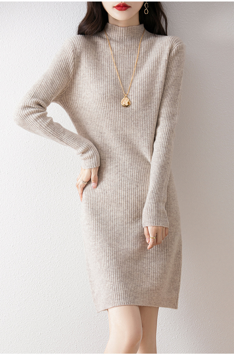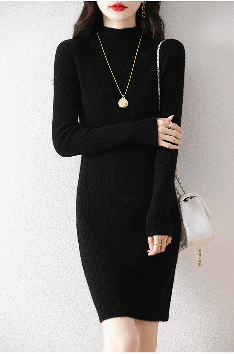 半高领针织连衣裙女秋冬内搭配大衣气质修身中长款包臀打底毛衣裙