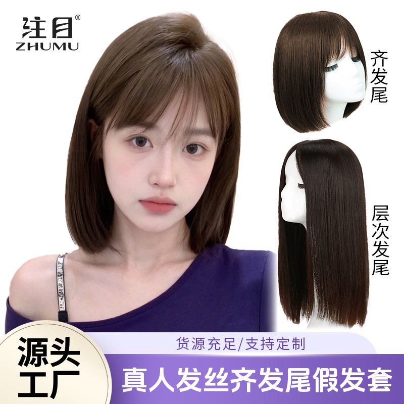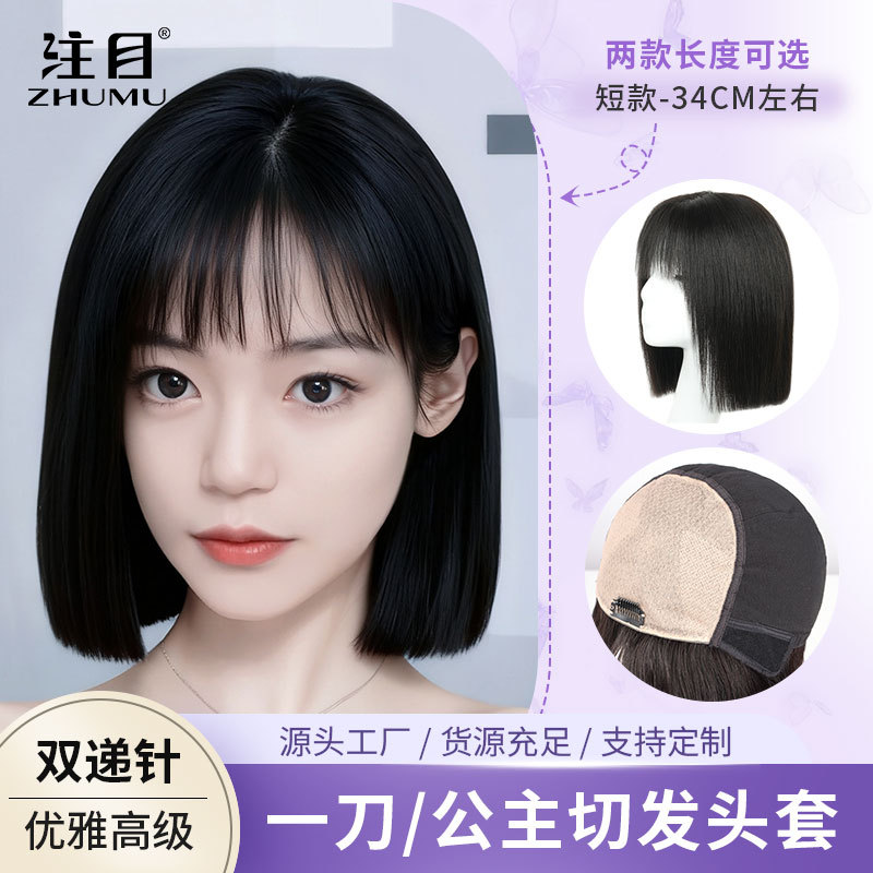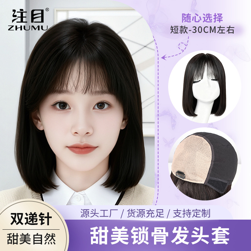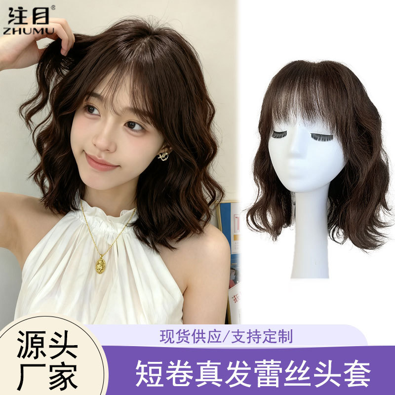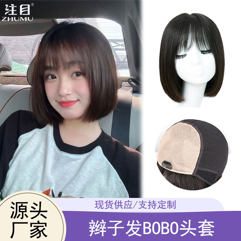 短发女真人发假发全头套自然减龄波波头真发假发套双递针手织发套