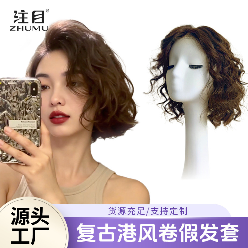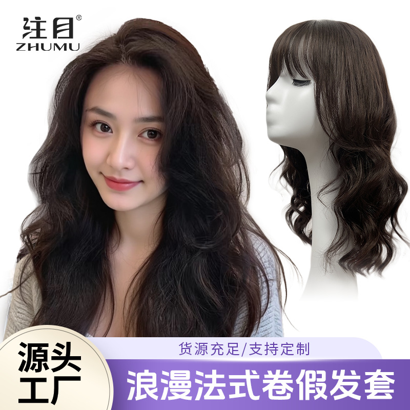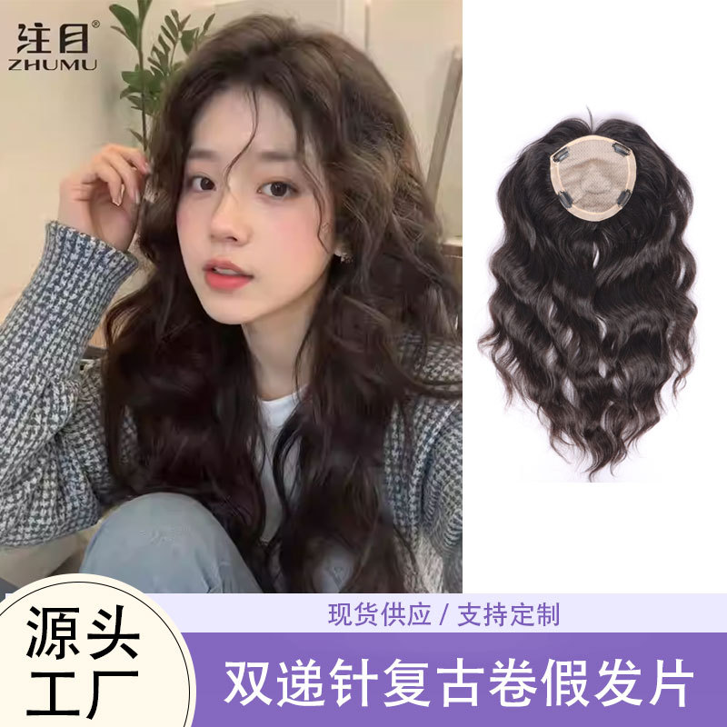 假发女复古长卷发头顶假发片全手织真人发补发片遮白发增发卷发片