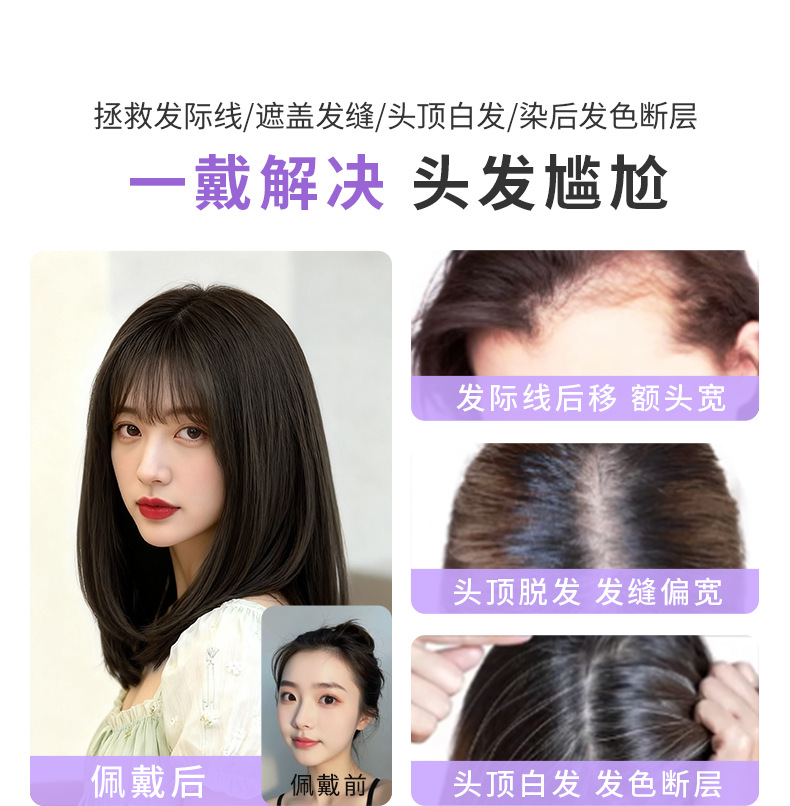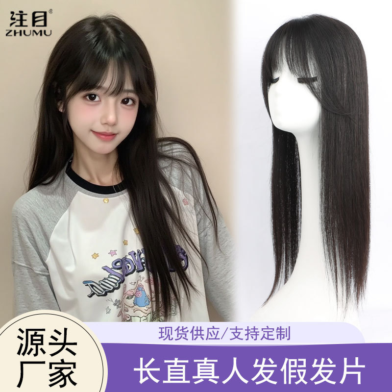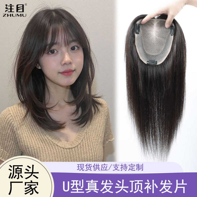 假发女长发真人发丝头顶补发片手织递针无痕假发片增发量透气发片