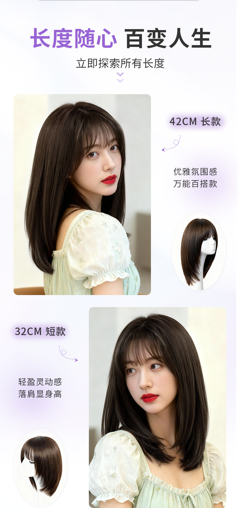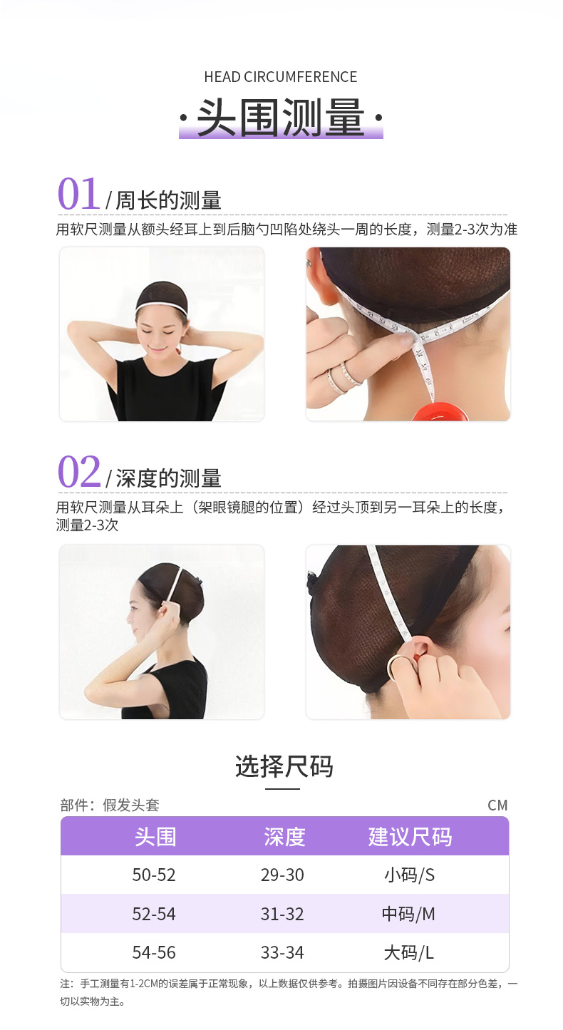 全真发头套长度 长短款约32-42cm
