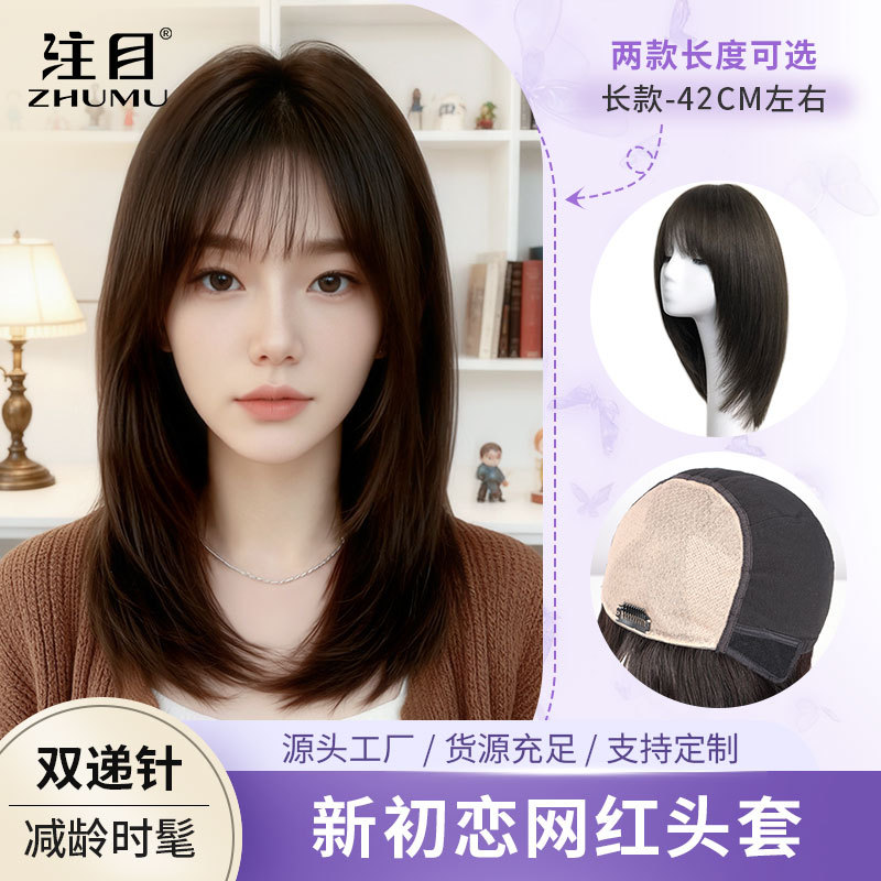 源工場直送 初恋風ウィッグ フルヘッドセット 人毛 ダブルニードル加工 パーマ・カラーリング可能 高頭頂ウィッグセット