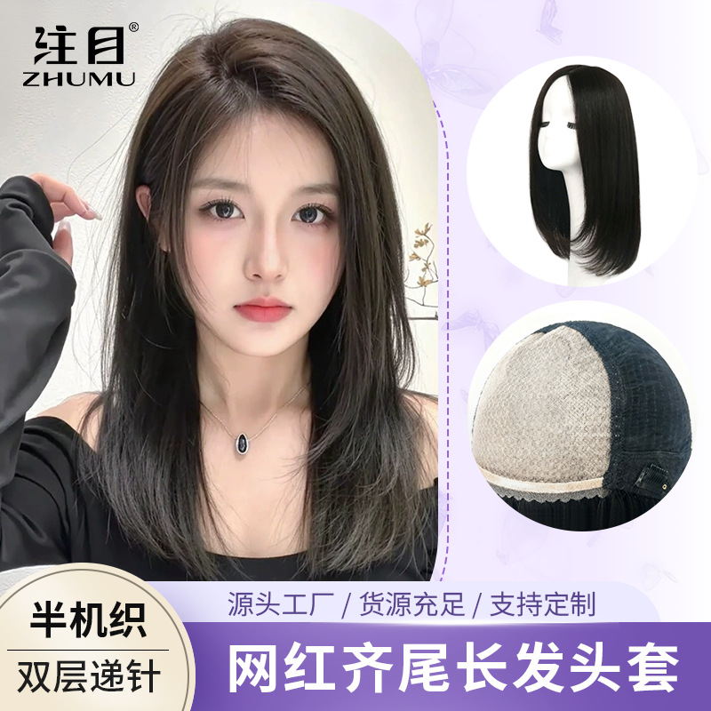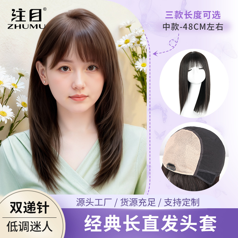 假发女中长锁骨发全头套手织双递真人发丝假发套内扣甜美减龄发套