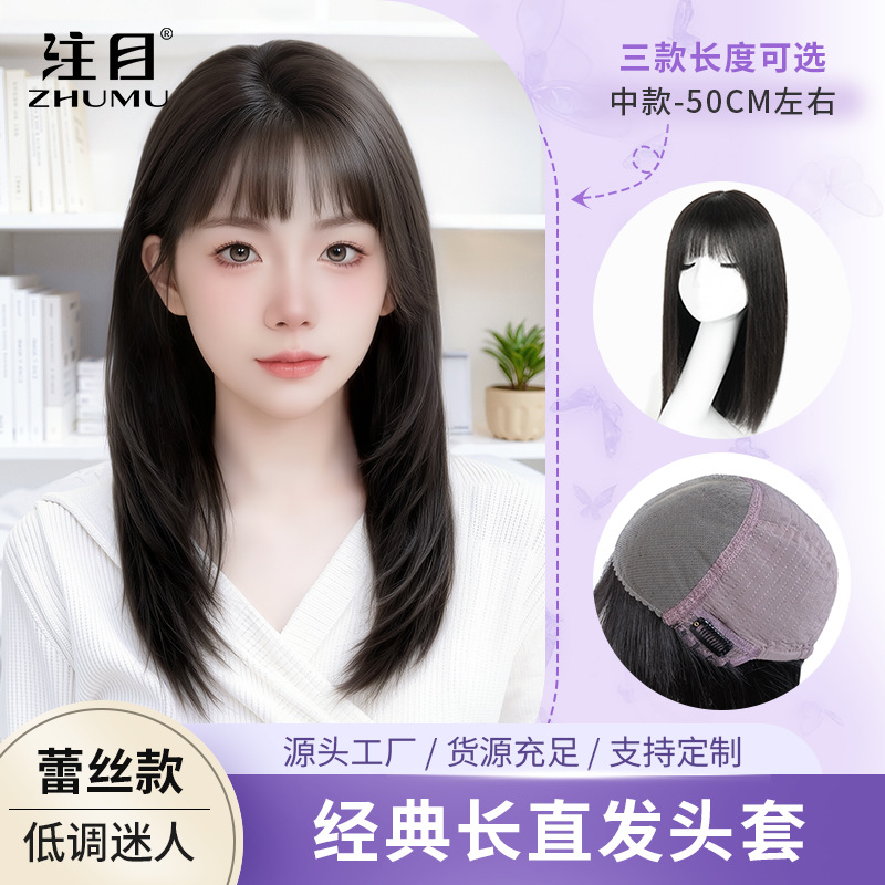 ロングストレートヘアの女性用ウィッグ、本物の髪で毛先まで揃ったフルウィッグ、白髪をカバーするフルウィッグ、染色やパーマが可能です。