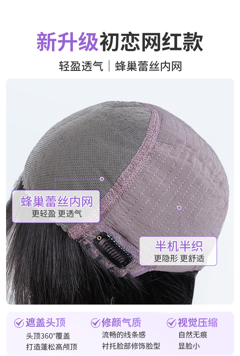 假发女短直发蕾丝头套全真发初恋款层次锁骨发自然透气隐形假发套