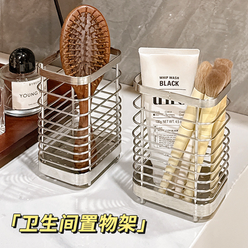 梳子置物架高级感化妆刷收纳筒卫生间浴室洗手台不锈钢牙刷收纳架