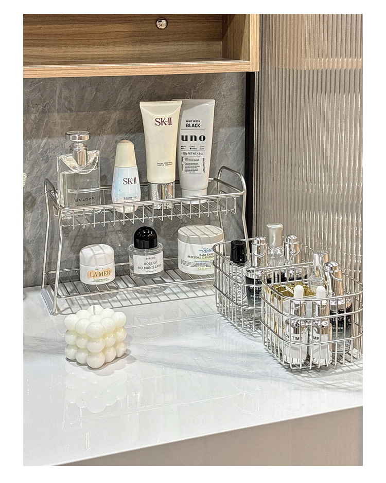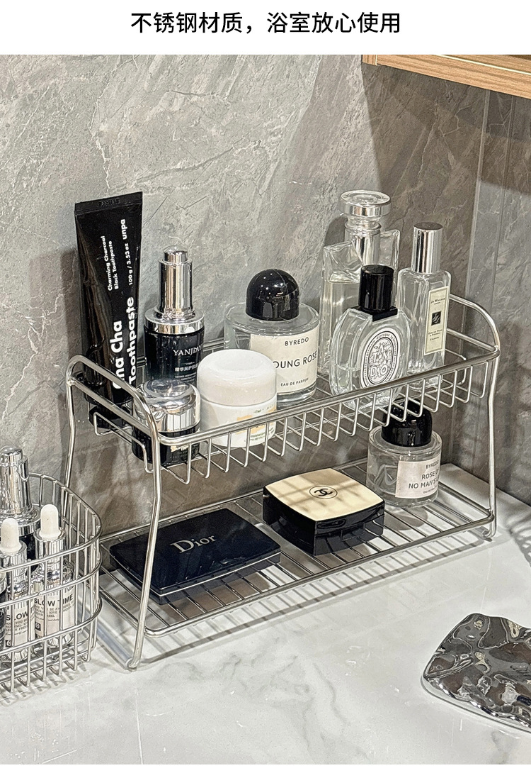 卫生间浴室洗漱台桌面多功能化妆品整理盒架子不锈钢置物架收纳架