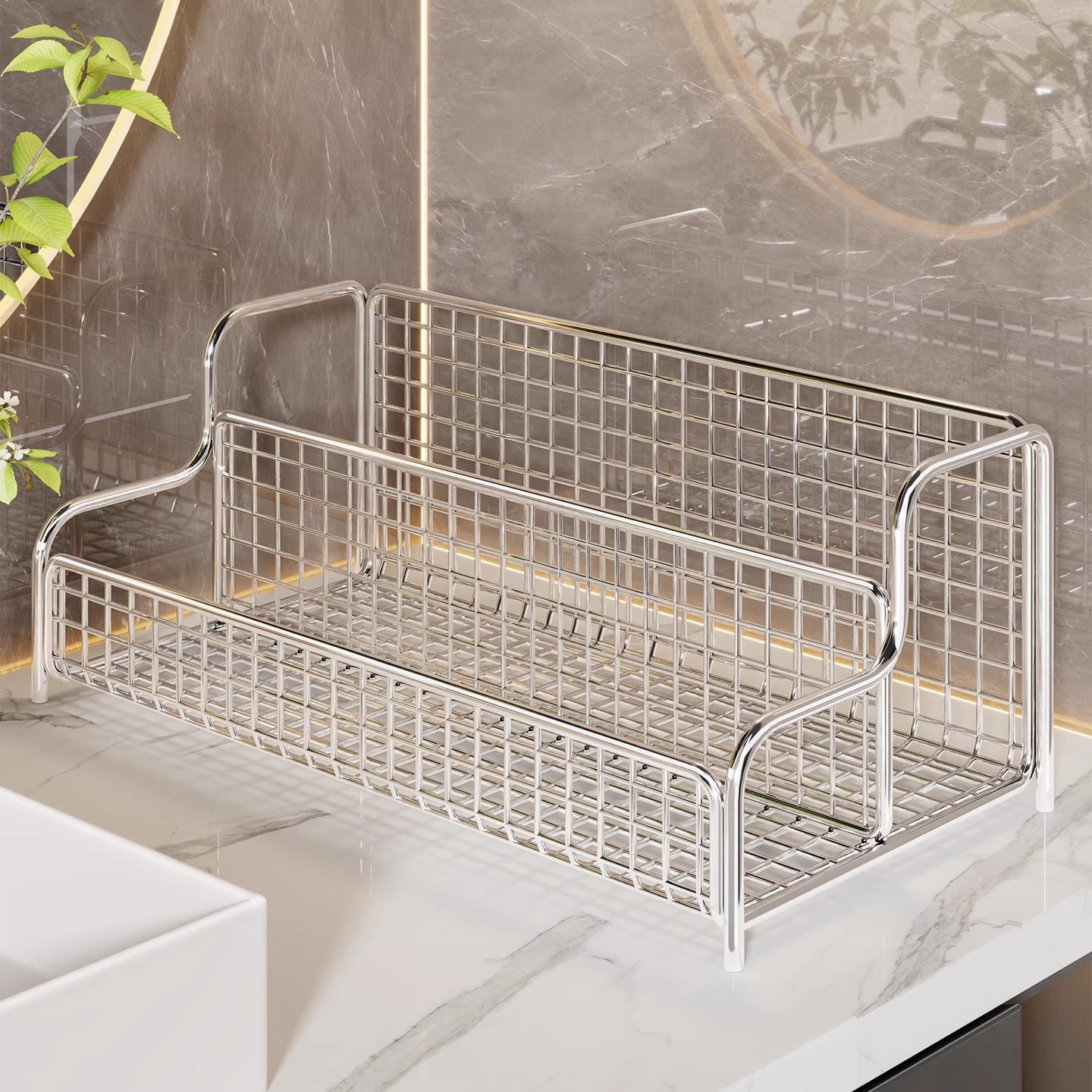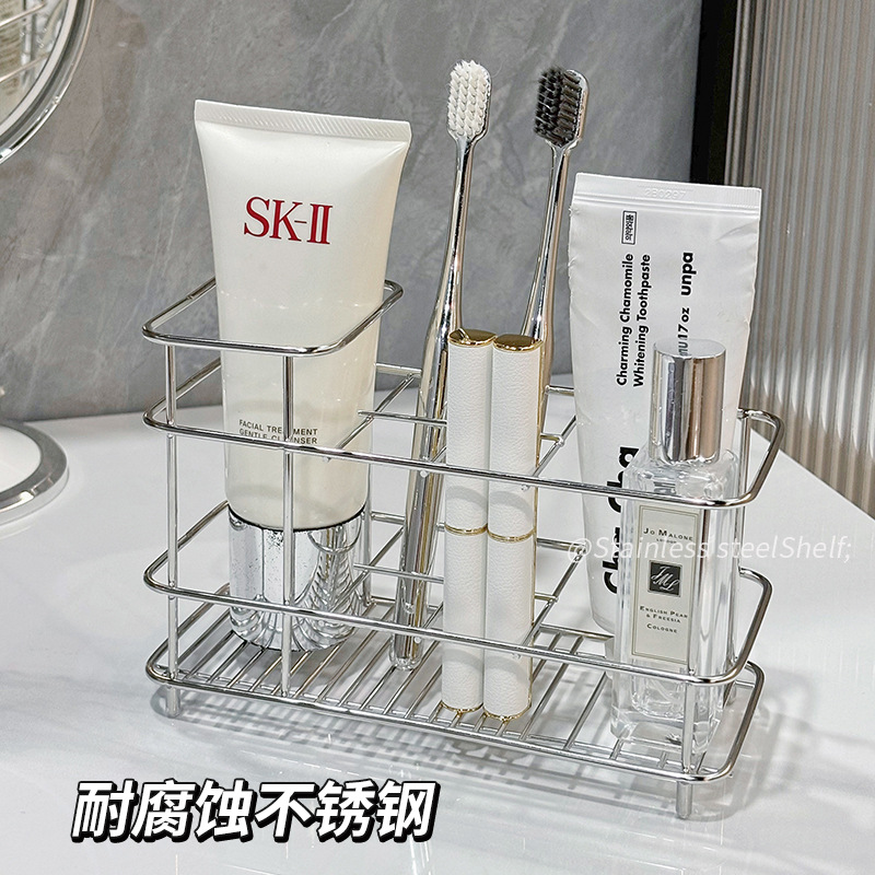 洗漱台收纳架桌面收纳盒不锈钢沥水置物化妆品筐篮卫生间浴室厕所