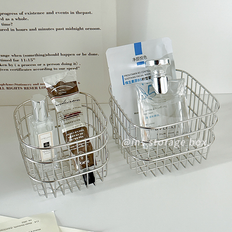 デスクトップ雑貨収納バスケット化粧品収納バスケット家庭用正方形収納ボックスインスタイルステンレス鋼収納バスケット