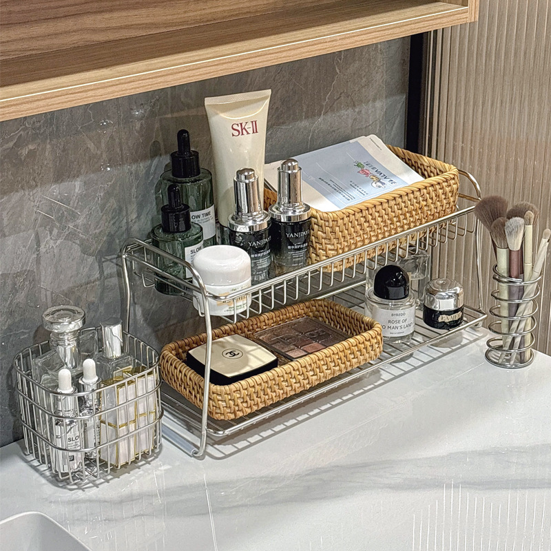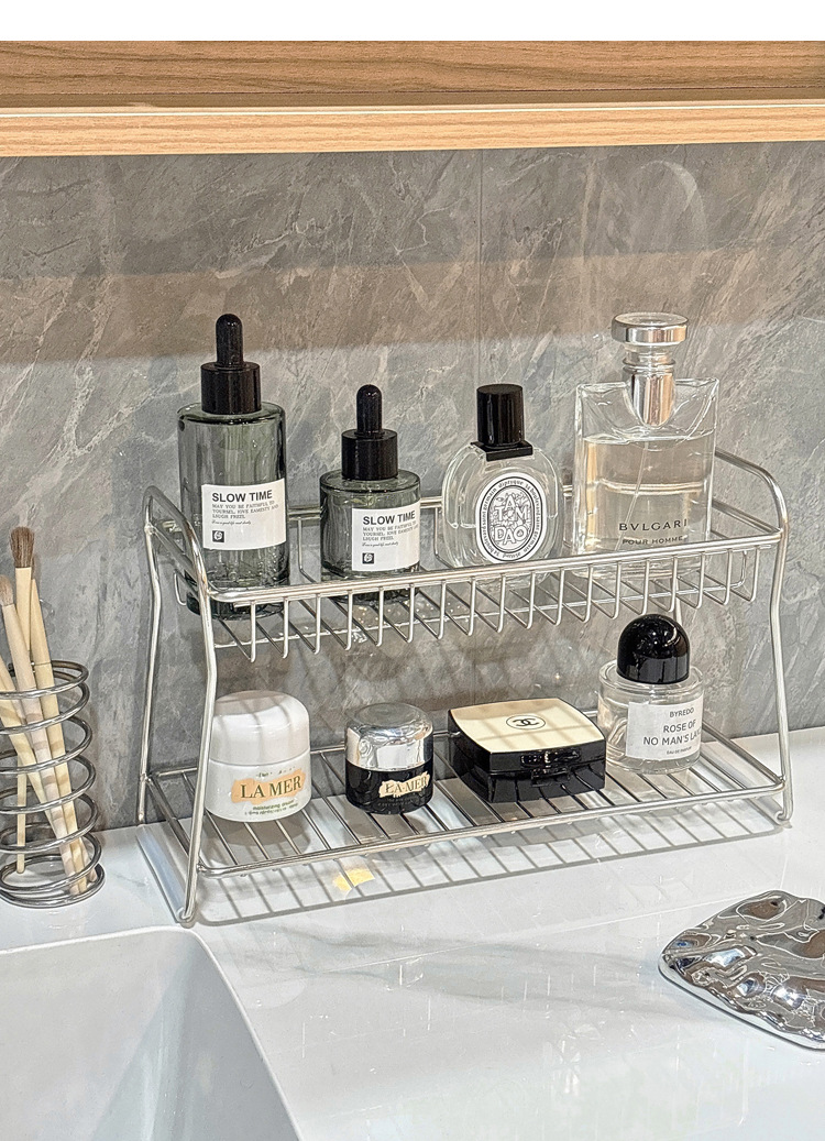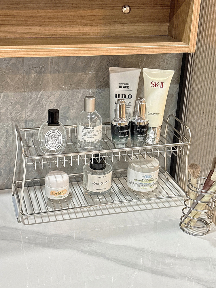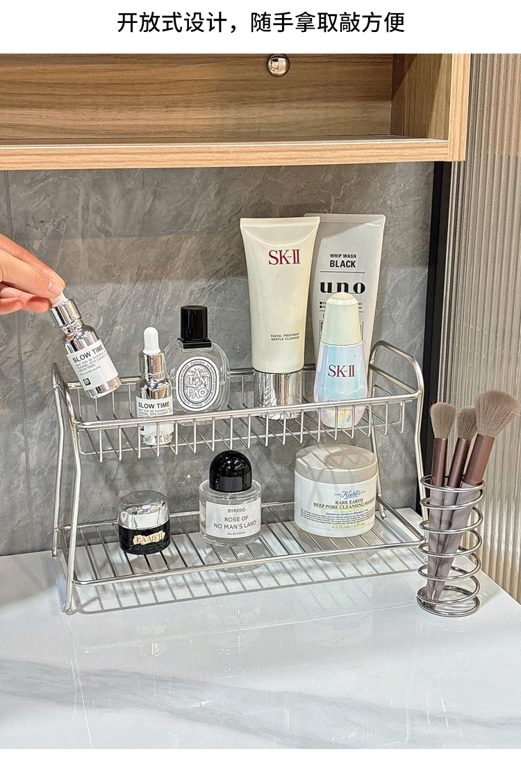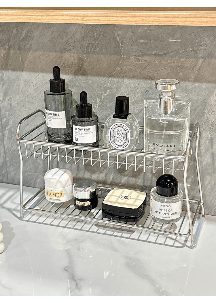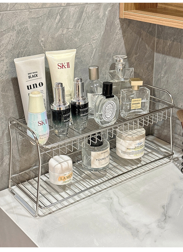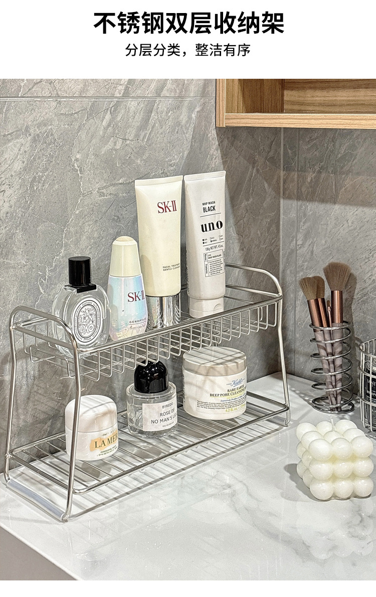 洗漱台不锈钢置物架双层浴室收纳卫生间化妆品护肤品收纳架