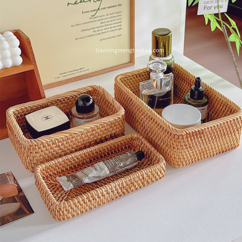 置物架长方形首饰盒子小杂物零食厨房整理盒篮筐桌面化妆品收纳盒