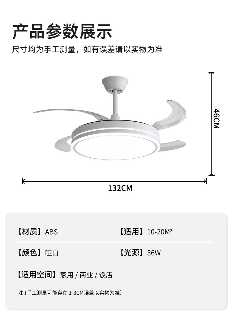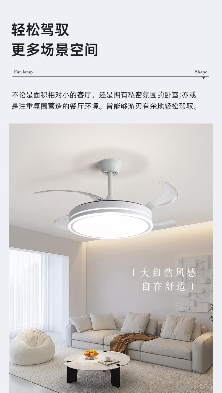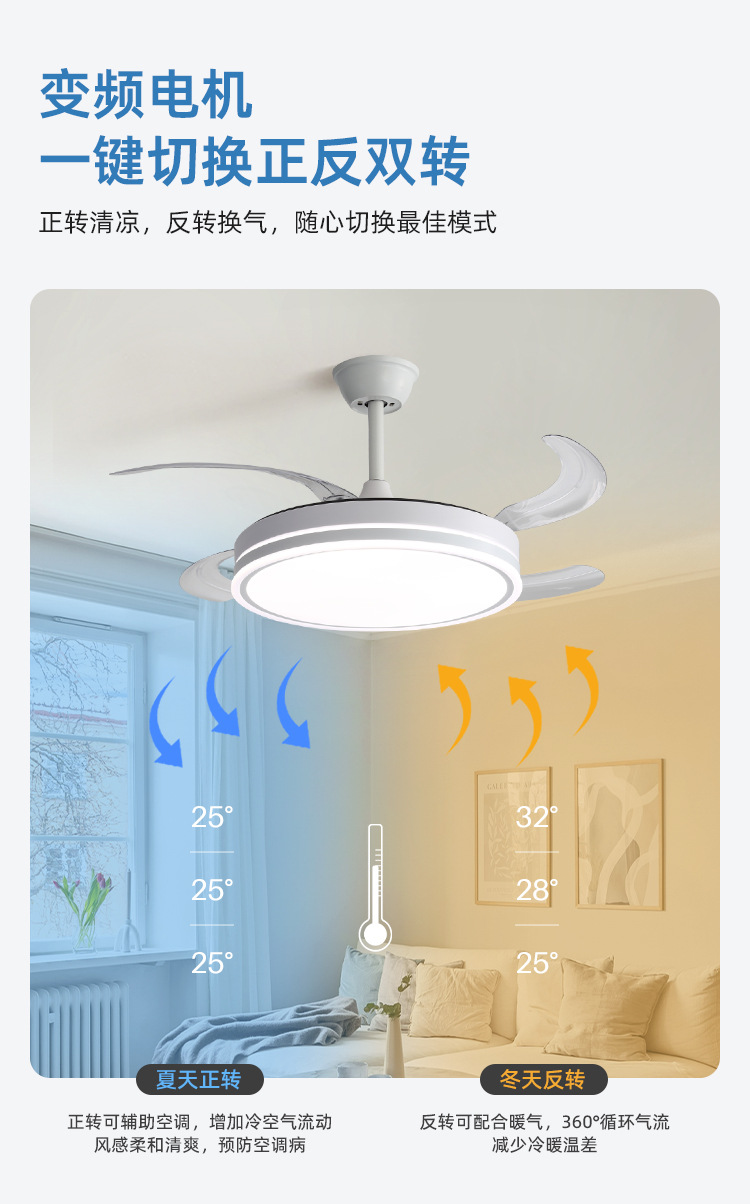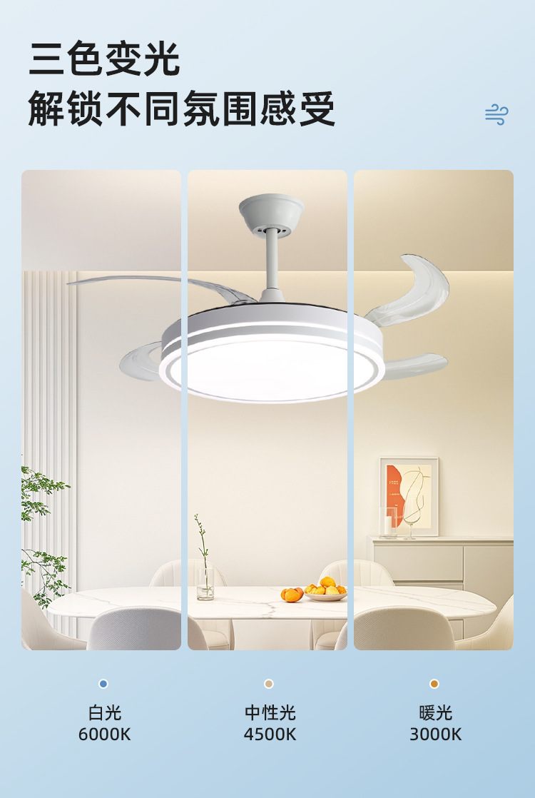 智能控制客厅灯全光谱隐形风扇灯变频卧室扇吸顶灯中山灯具工厂