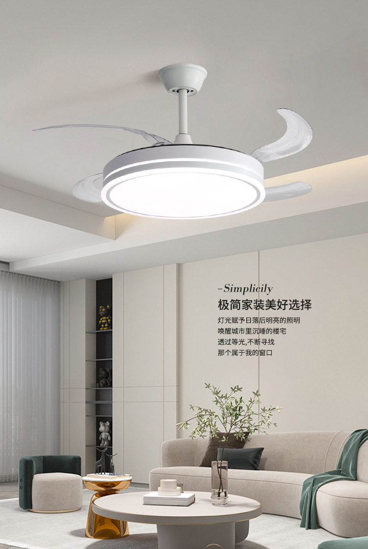 RA97フルスペクトルヘッドライト、薄型で透明感のある可変周波数ファンライト、スマートホーム、低層階用中山照明器具
