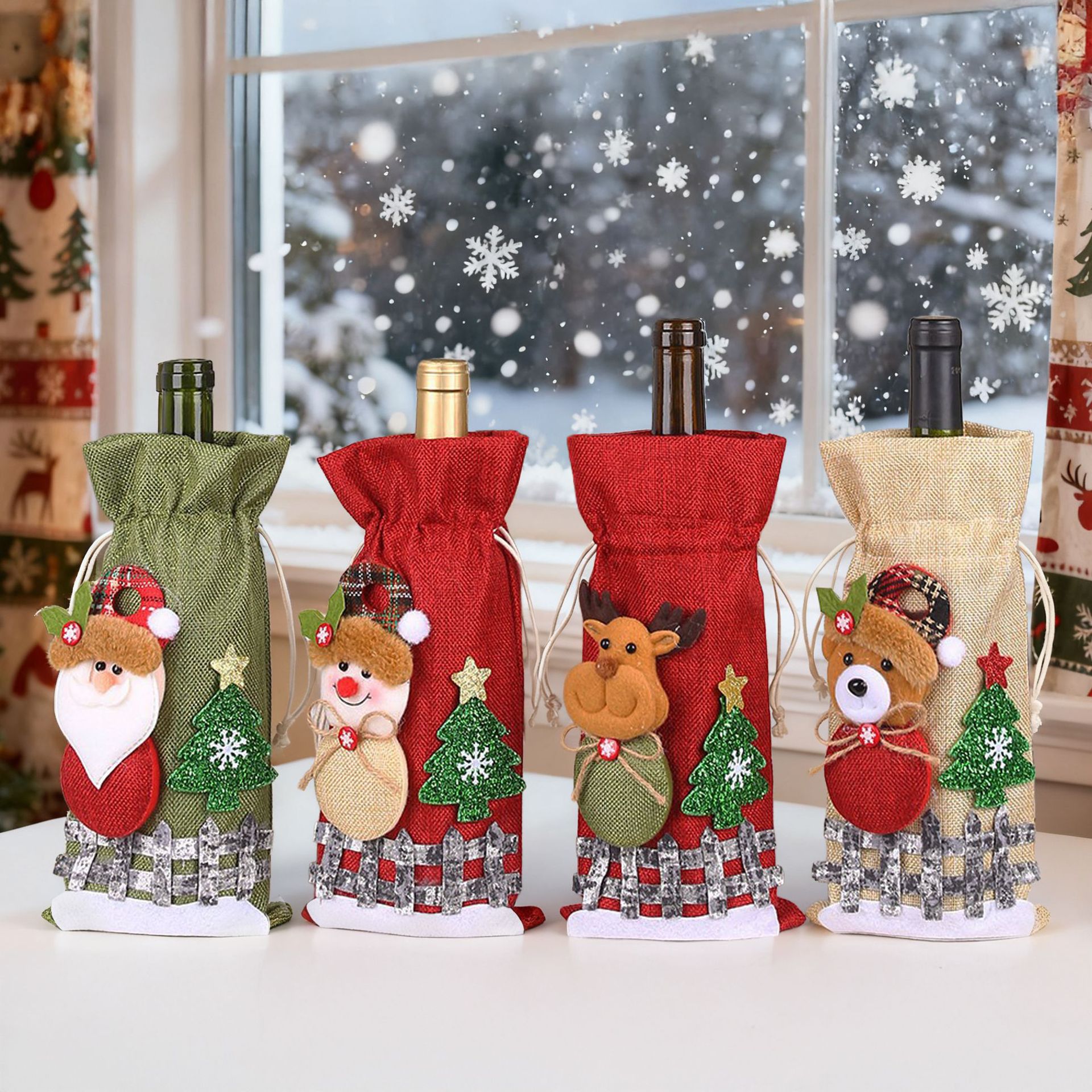 豪貝の新型のクリスマスの装飾品の麻布の雪の漫画のひもの酒の瓶のカバーの格子の人形の酒の瓶の袋の卸売り