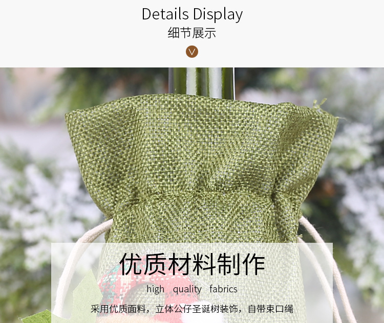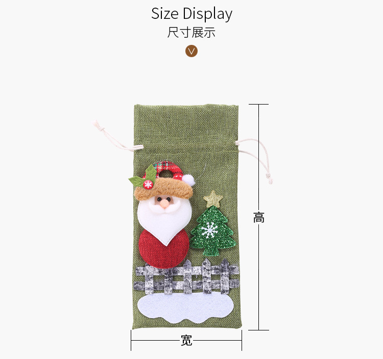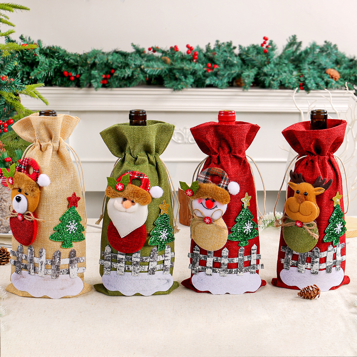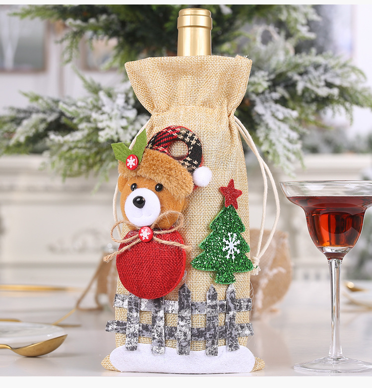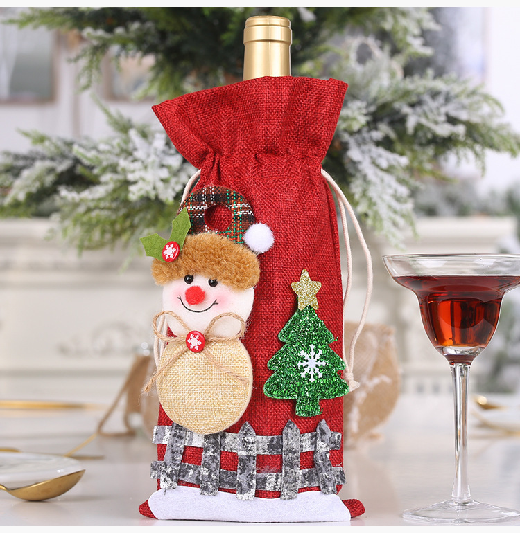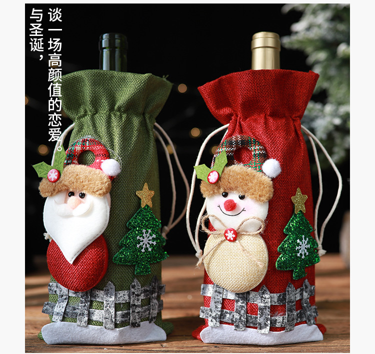 铭冠新款圣诞麻布抽绳酒瓶套栅栏公仔酒瓶袋圣诞节装饰品餐桌装扮