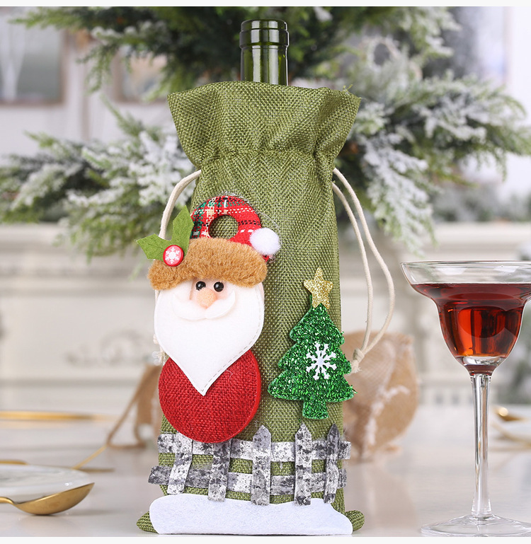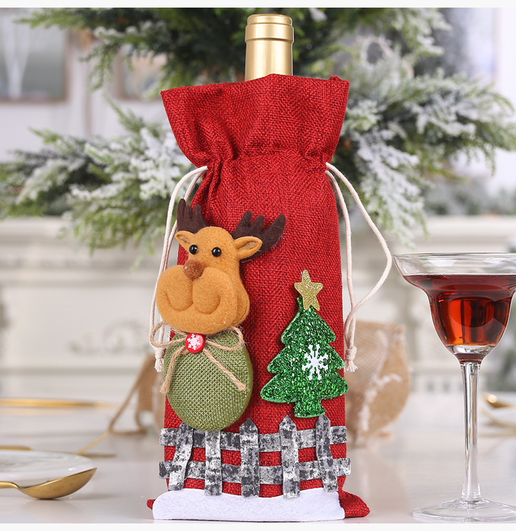 跨境圣诞节麻布抽绳酒瓶套老人麋鹿创意圣诞公仔酒套栅栏红酒装饰