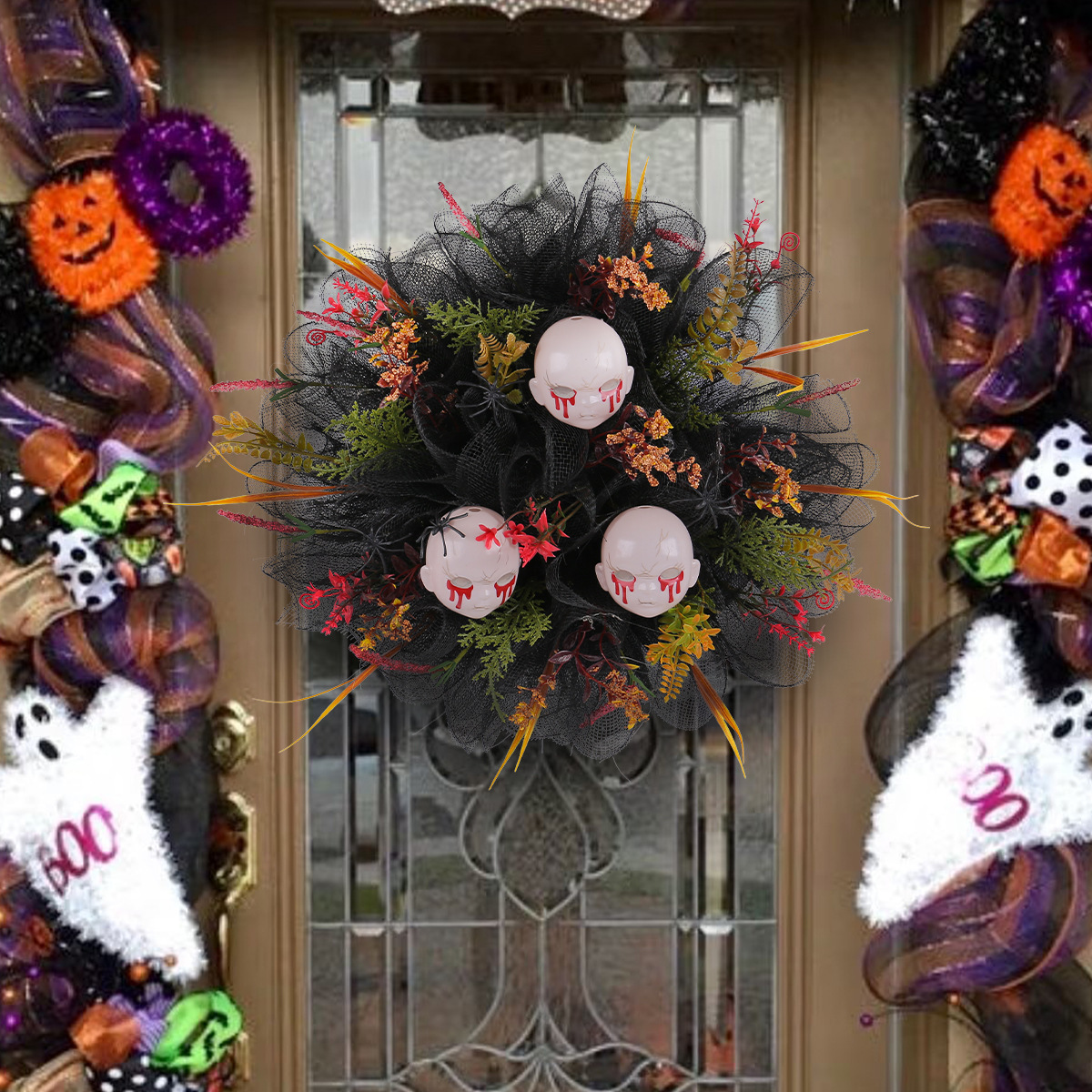 クロスボーダーハロウィンホラー血涙スカルガーランド3つのゴーストヘッドブラックメッシュドアハンギングパーティーレイアウト小道具