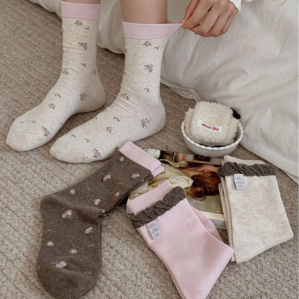 産後ソックス、純綿白パイルソックス、春秋ボンレスソックス、インスタ映えする和風カレッジ吸汗ミッドカーフソックス、諸曁卸売