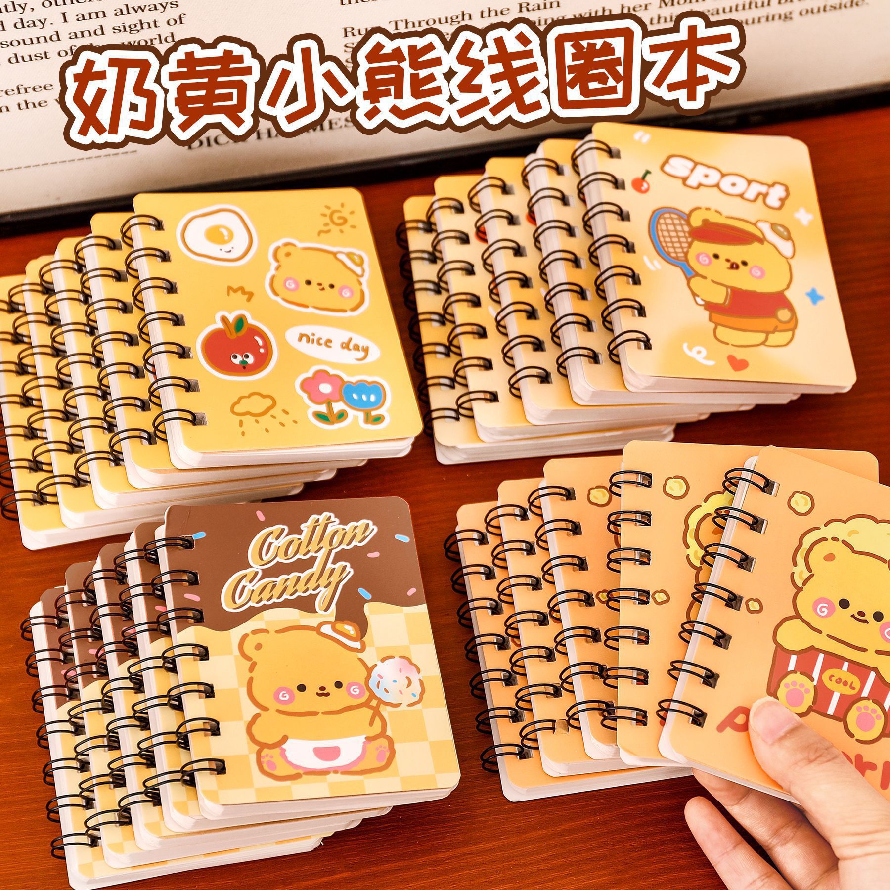 卡通奶黄小熊线圈本侧翻记事本学生口袋笔记本A7便携画画小本子