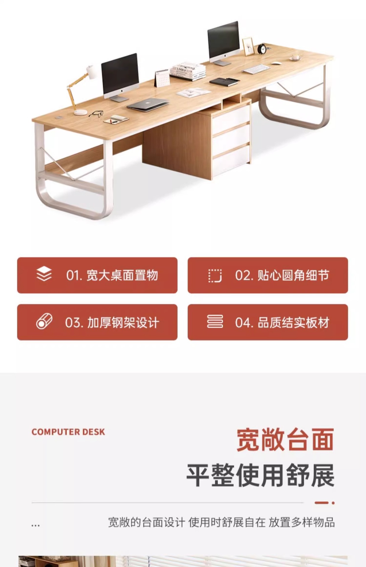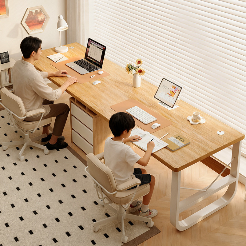 双人书桌家用台式电脑桌卧室电竞桌椅带抽屉办公桌工作台长条桌子