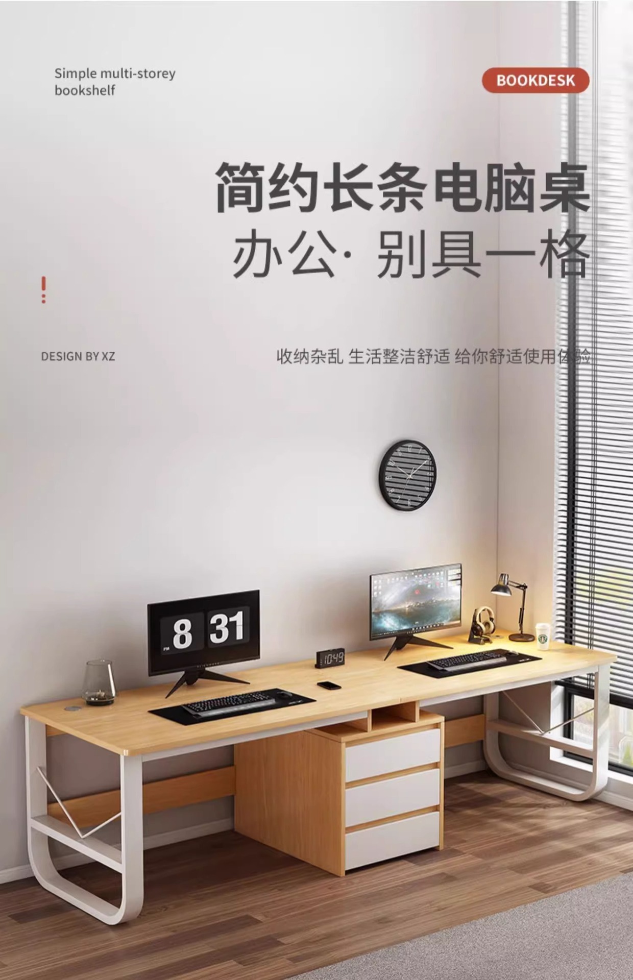 双人情侣卧室工作台并排办公桌子现代电脑桌家用长书桌电竞桌