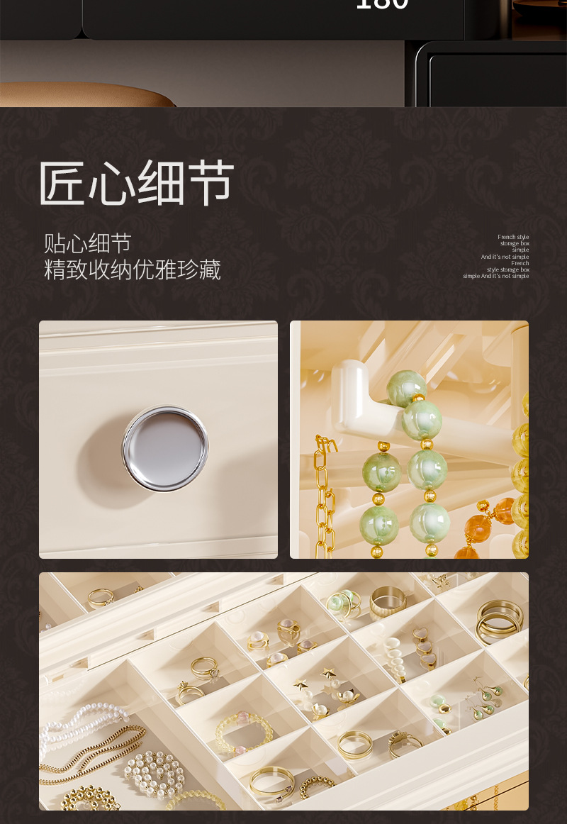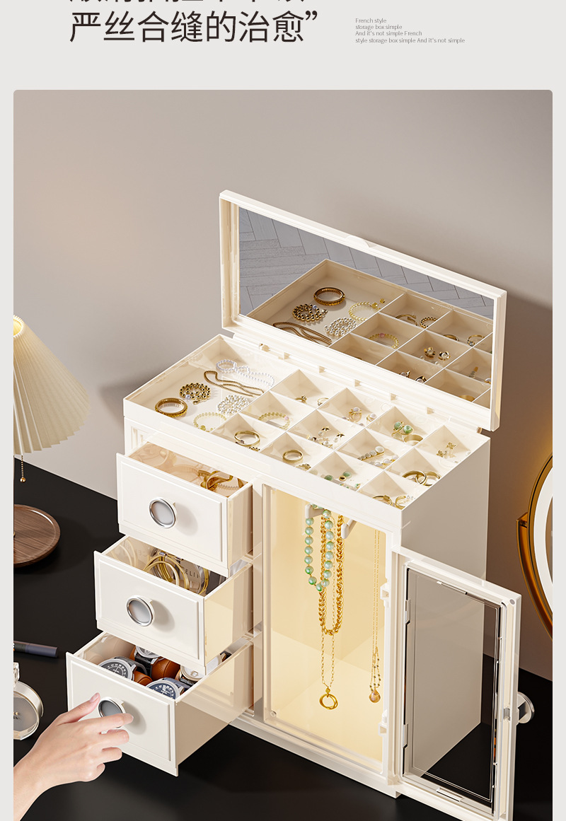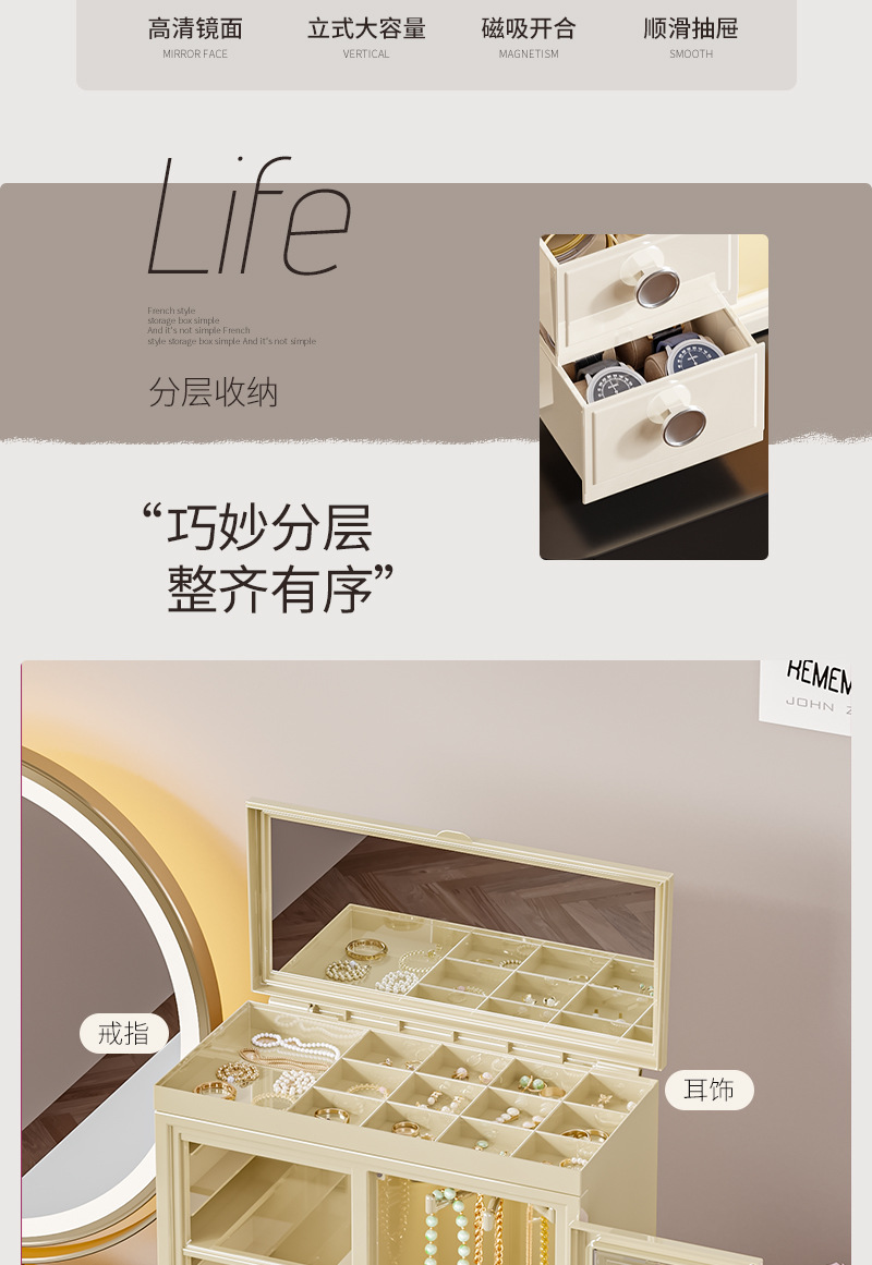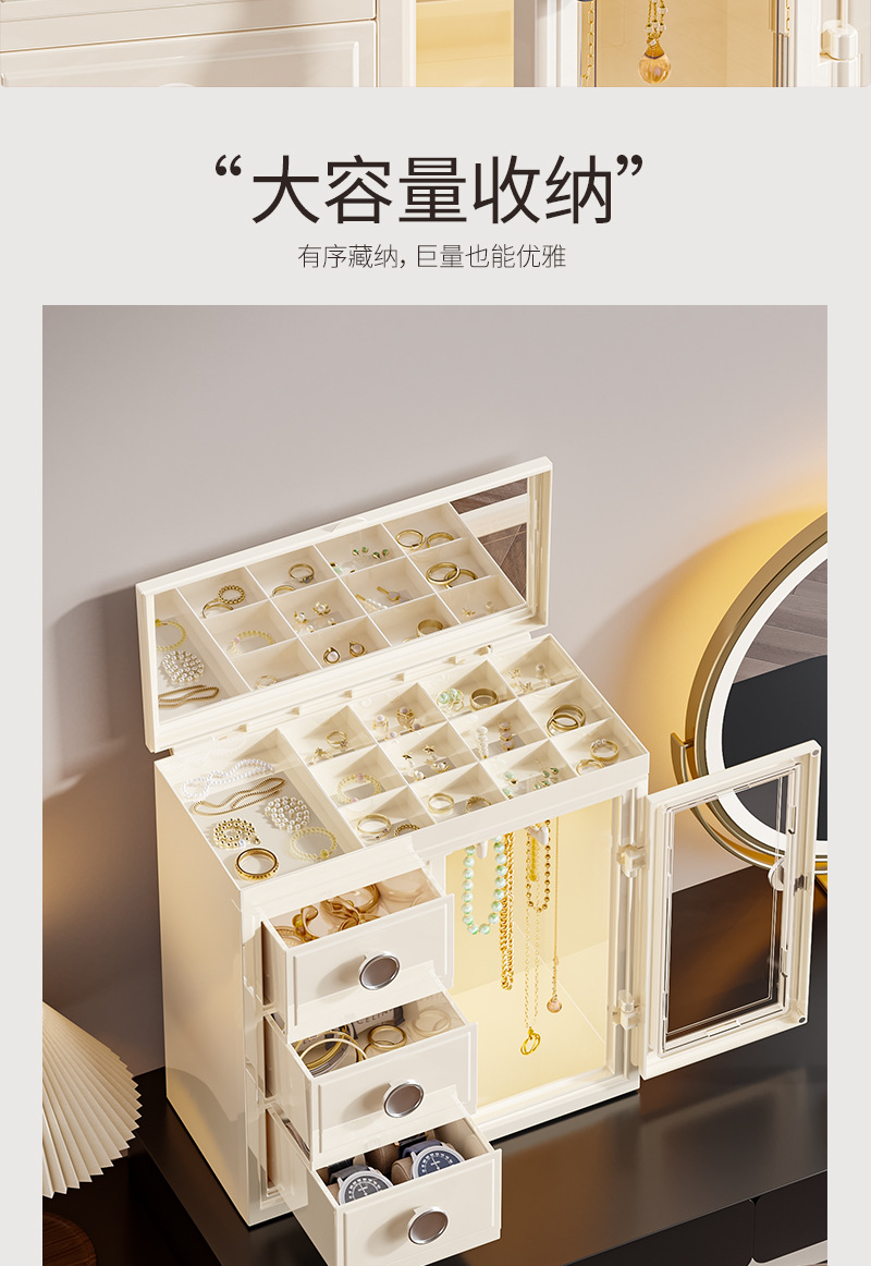 首饰收纳盒家用高档项链手镯戒指收纳珠宝盒多层磁吸抽屉式收纳柜