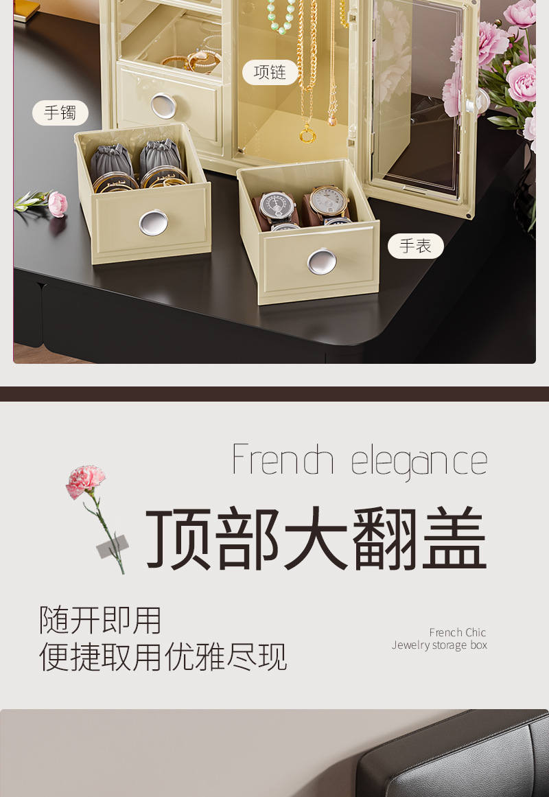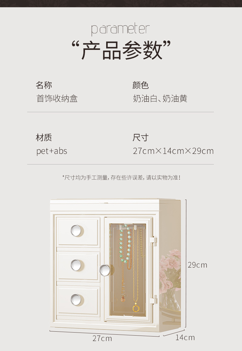 颜色 首饰收纳盒【奶黄*透明抽屉】,首饰收纳盒【奶白*透明抽屉】,首饰收纳盒【奶黄*实色抽屉】,首饰收纳盒【奶白*实色抽屉】