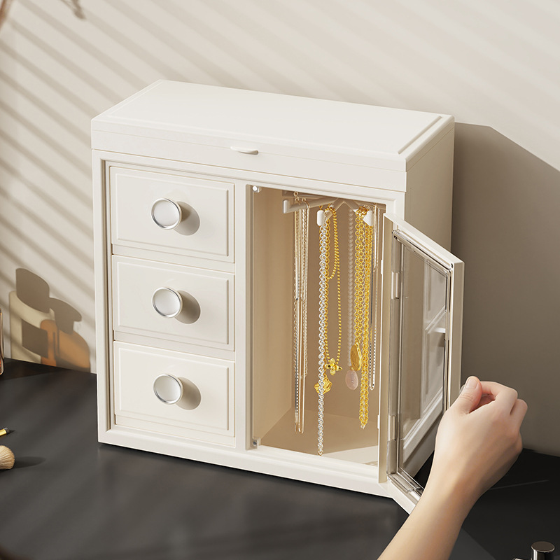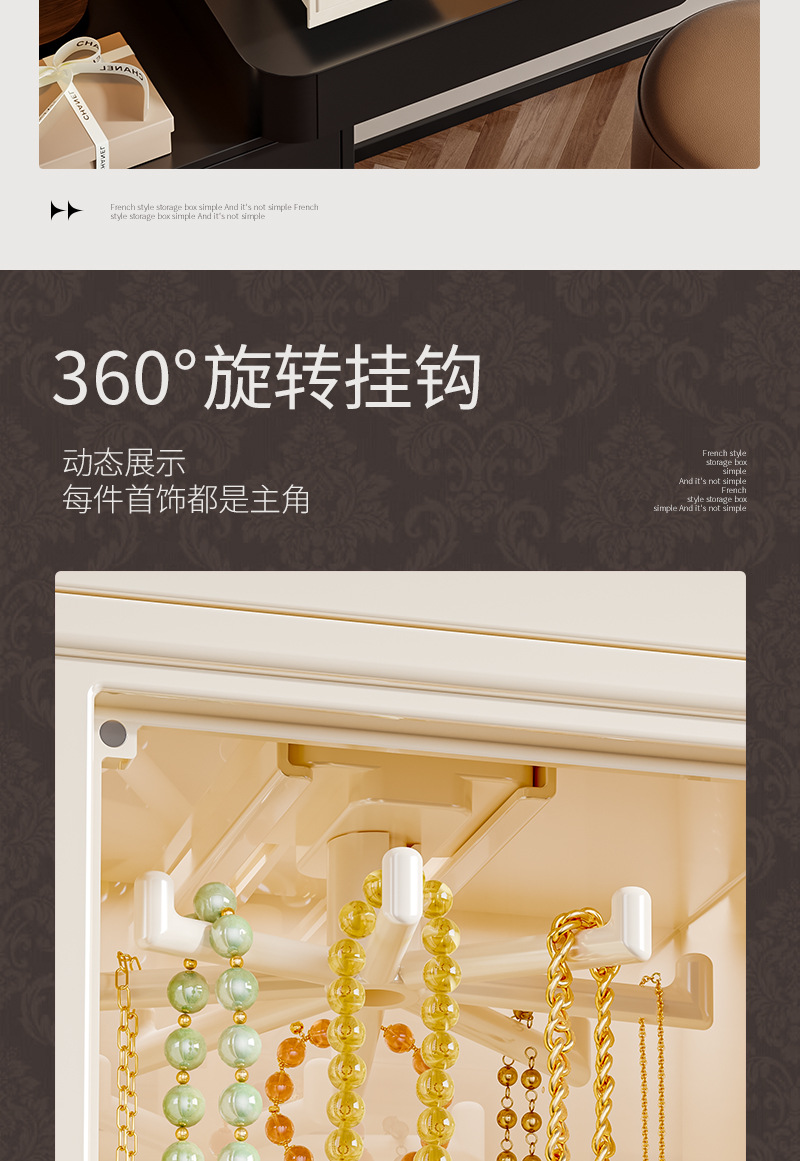 ジュエリー収納ボックス大容量ジュエリーホーム二層イヤリングリング回転ネックレスジュエリー収納ボックスクリームスタイル
