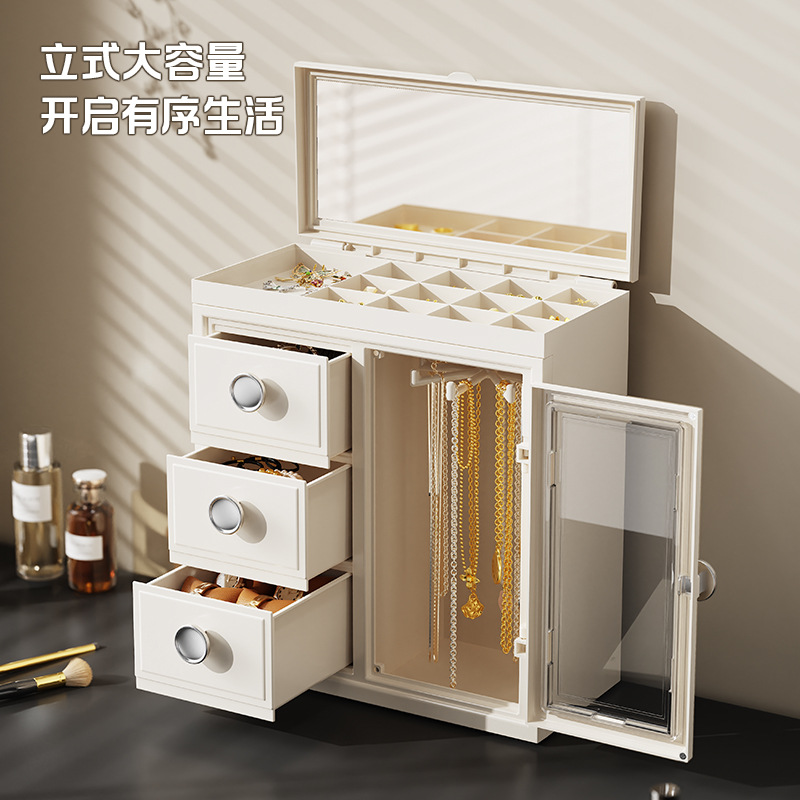 ジュエリーボックス大容量ミラー引き出しタイプイヤリングリングネックレスジュエリー絶妙な回転収納ボックス新しいハイエンド