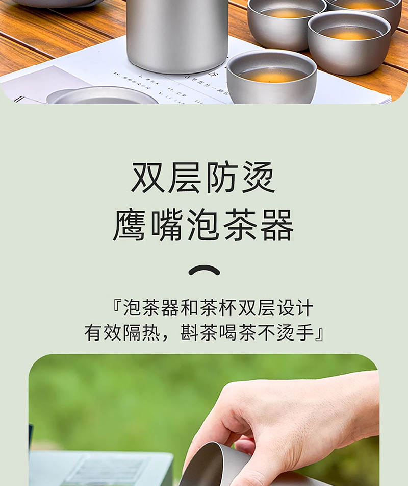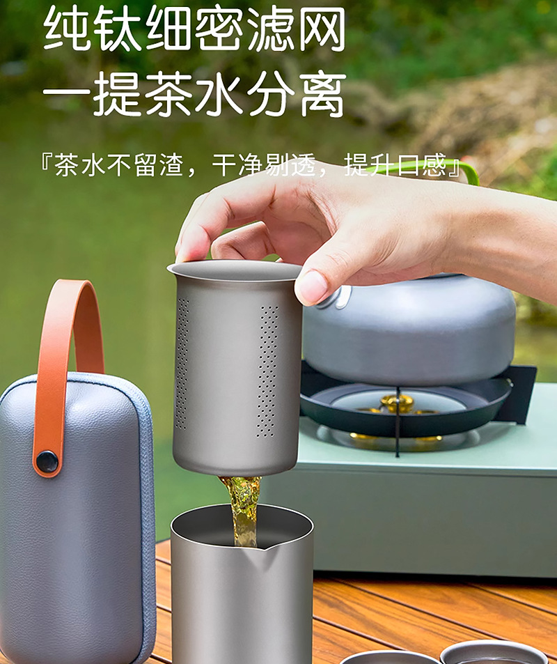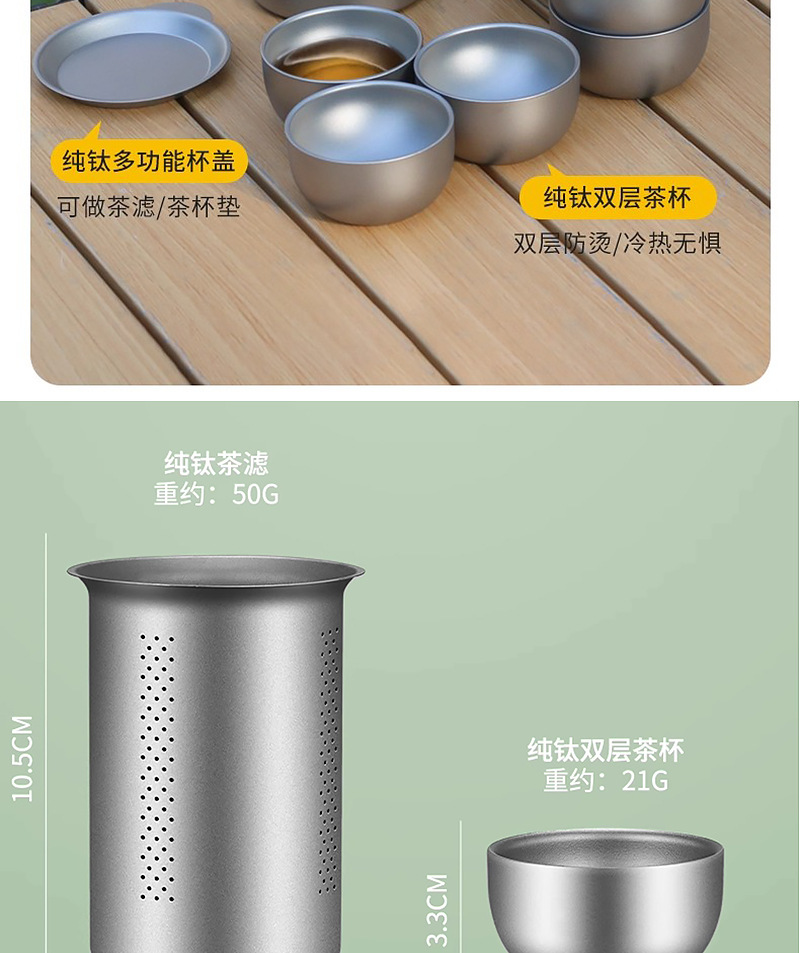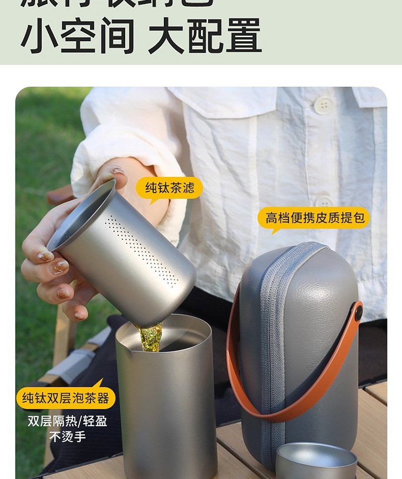 便携旅行纯钛茶具套装茶杯双层功夫泡茶器户外露营钛合金快客杯子