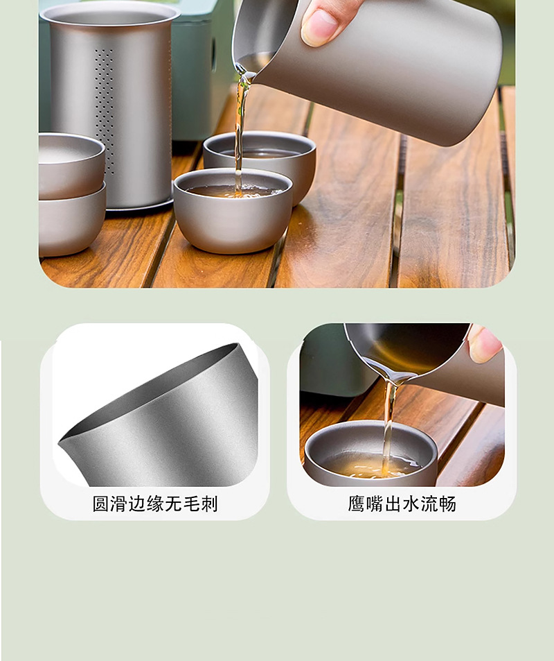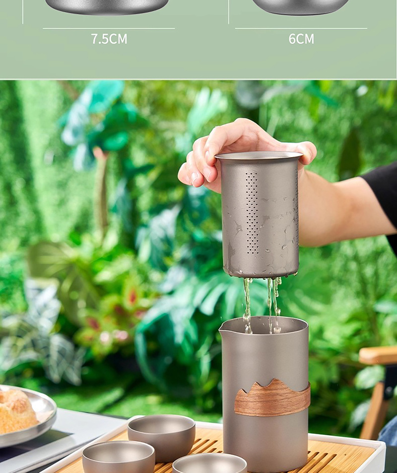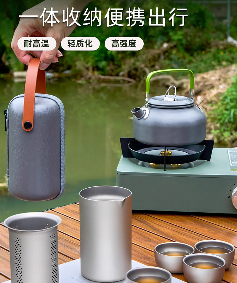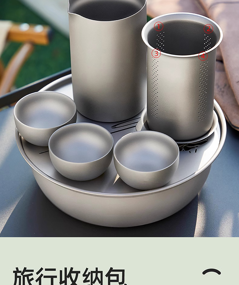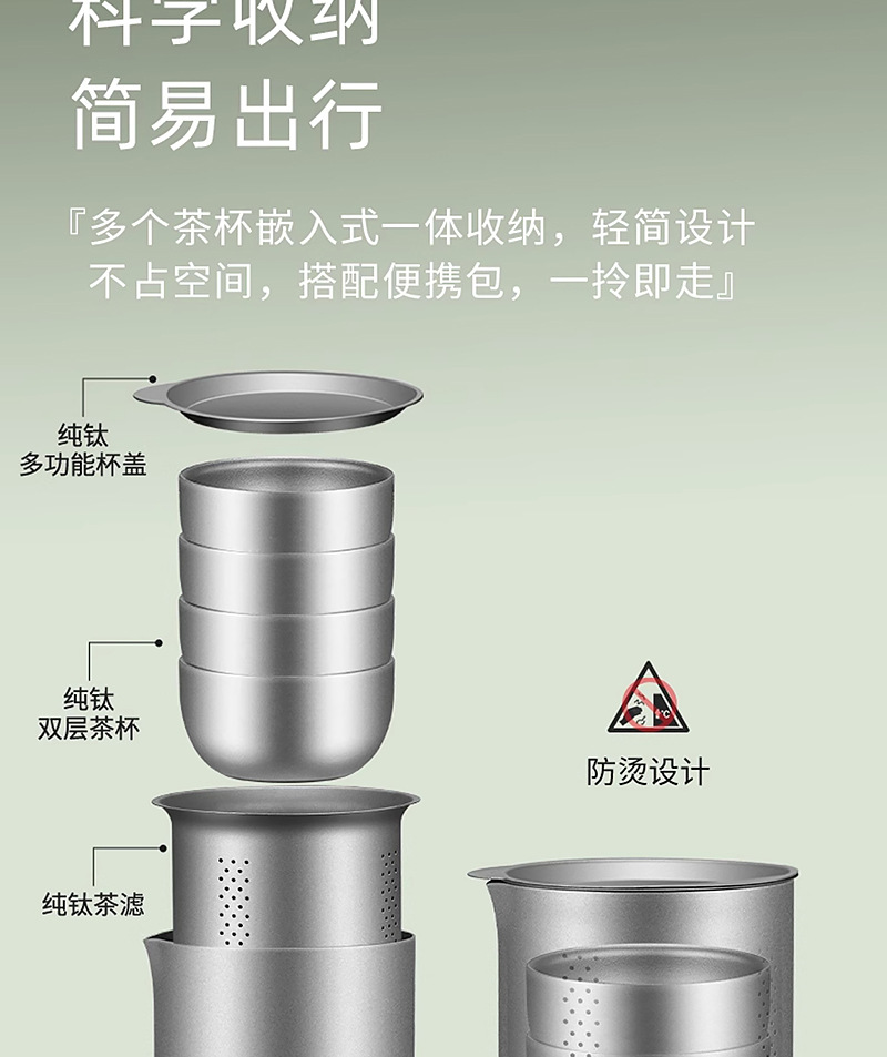便携旅行纯钛茶具套装茶杯双层功夫泡茶器户外露营钛合金快客杯子