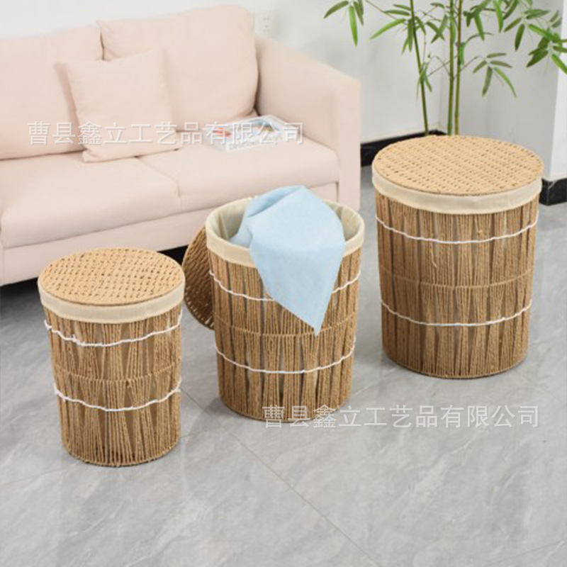 卸売り収納かごの洗濯物かご紙編みの洗濯物収納かご蓋付き超大型家庭用収納桶円形深かご