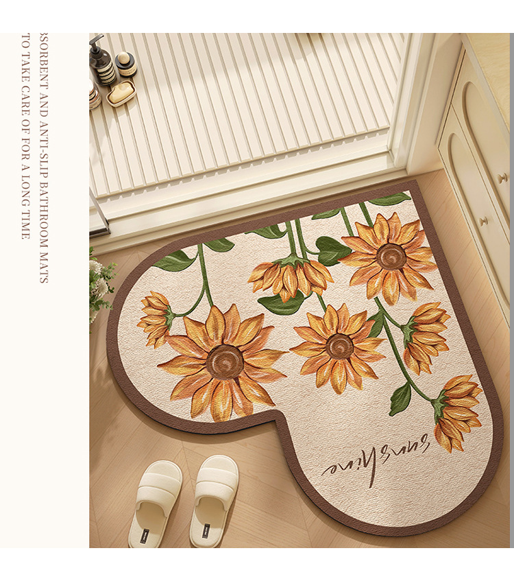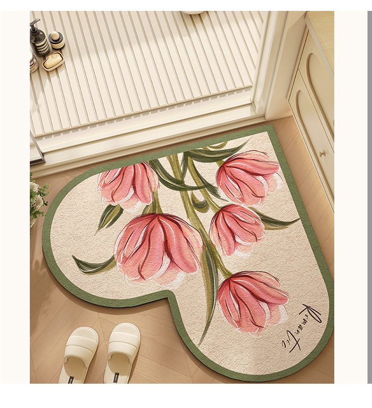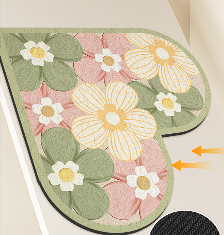 花卉硅藻泥地垫心形浴室地垫家用卫生间吸水防滑脚垫易打理地垫