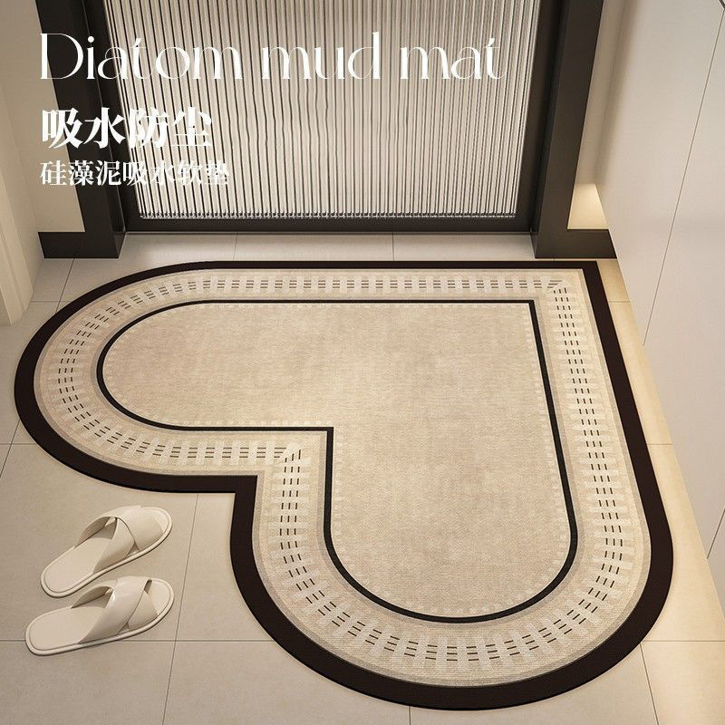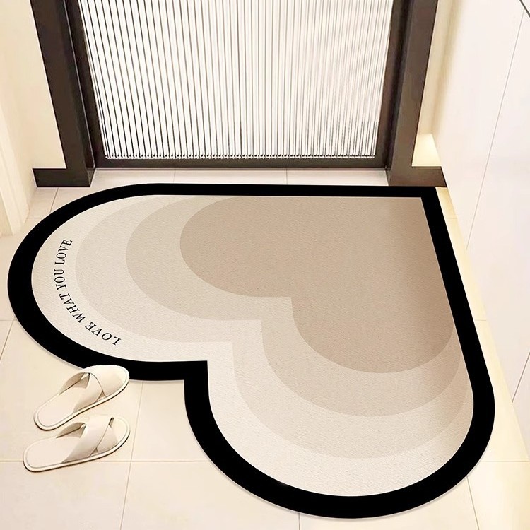 入口ドアマット珪藻泥吸水マット高级感玄関ドアマット爱ハート型トイレ滑り止め玄関マット