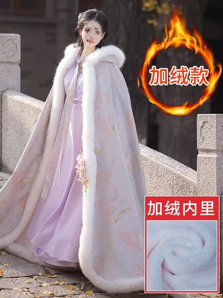汉服斗篷加绒加厚2025冬季新款外套长款披肩古装国风斗篷带帽披风