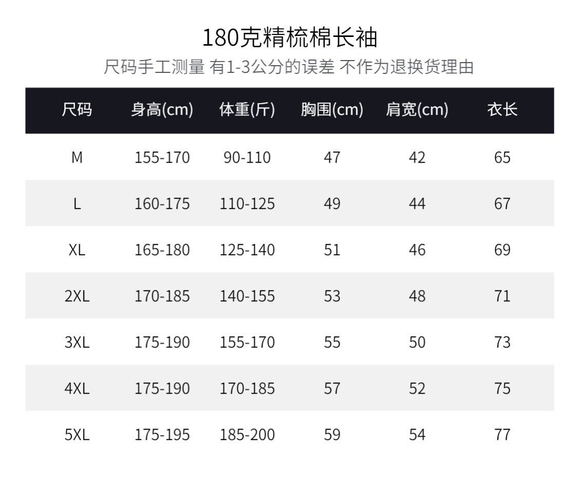 男女同款180克纯色精梳棉长袖T恤 宽松休闲卫衣春秋打底衫CVC秋衣
