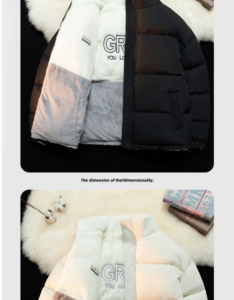 綿服の男性の子羊のベルベットのコートの潮男の冬のベルベットの厚い綿入れの服はゆったりしていてかっこいいカップルの綿入れの上着です