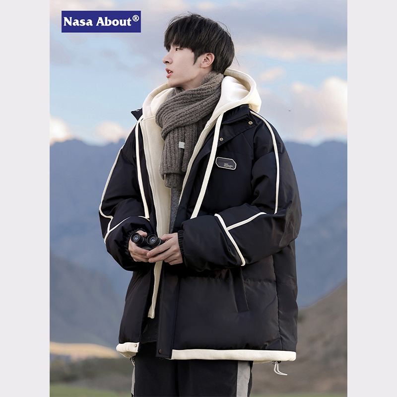 NASAブランド連名2025冬に綿入れを厚くした男性の帽子と保温したゆるいファッションコート