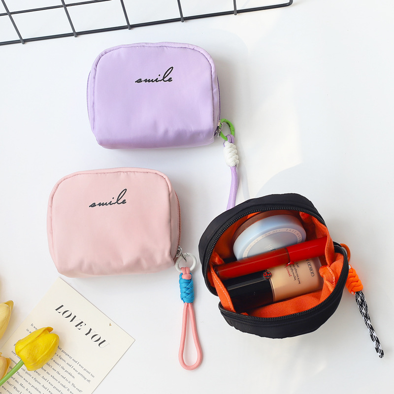 携帯でシンプルな百合ジッパー化粧バッグ韓国版学生ネット赤ジッパー純色生理用ナプキン収納バッグ女性かわいい