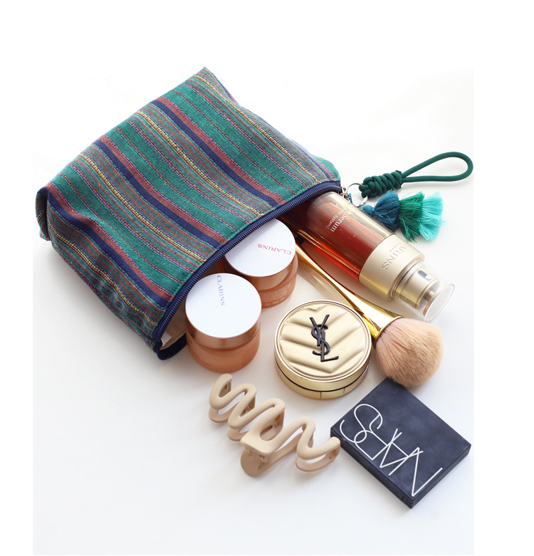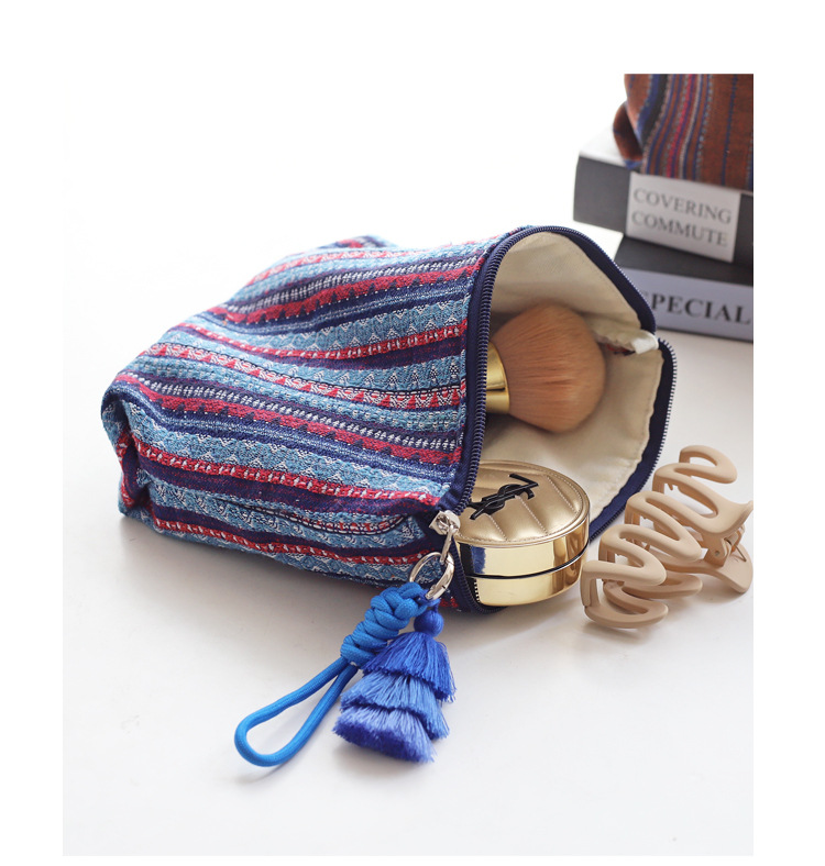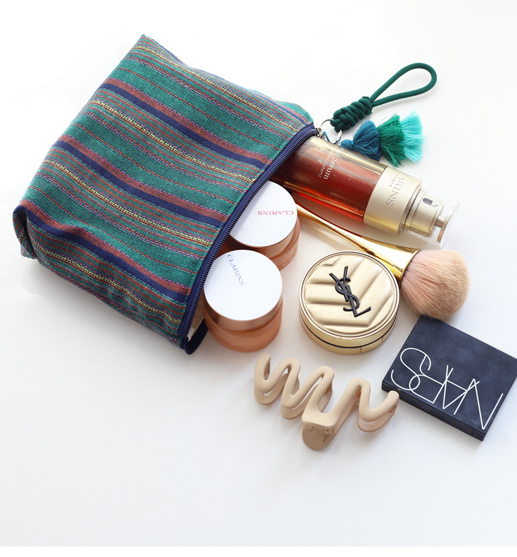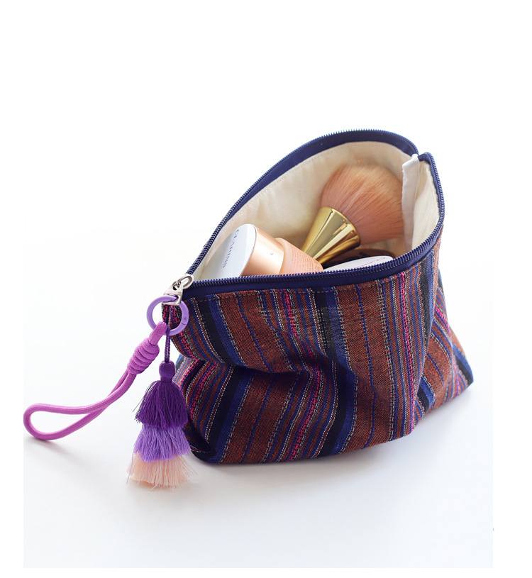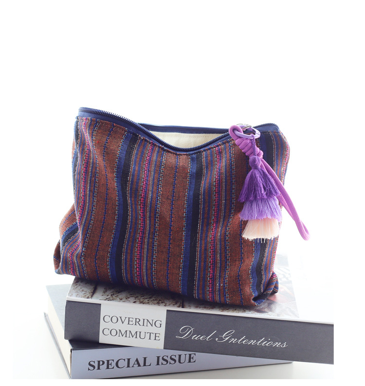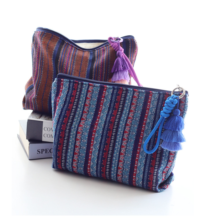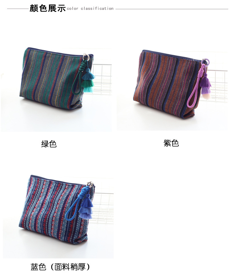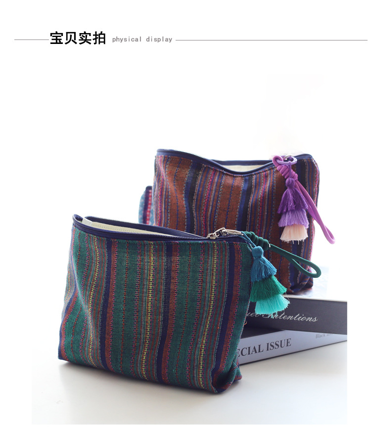 彩色条纹流苏手拎民族风情布艺拉链化妆包女生旅行收纳包大容量
