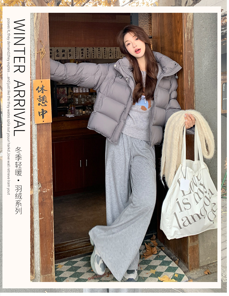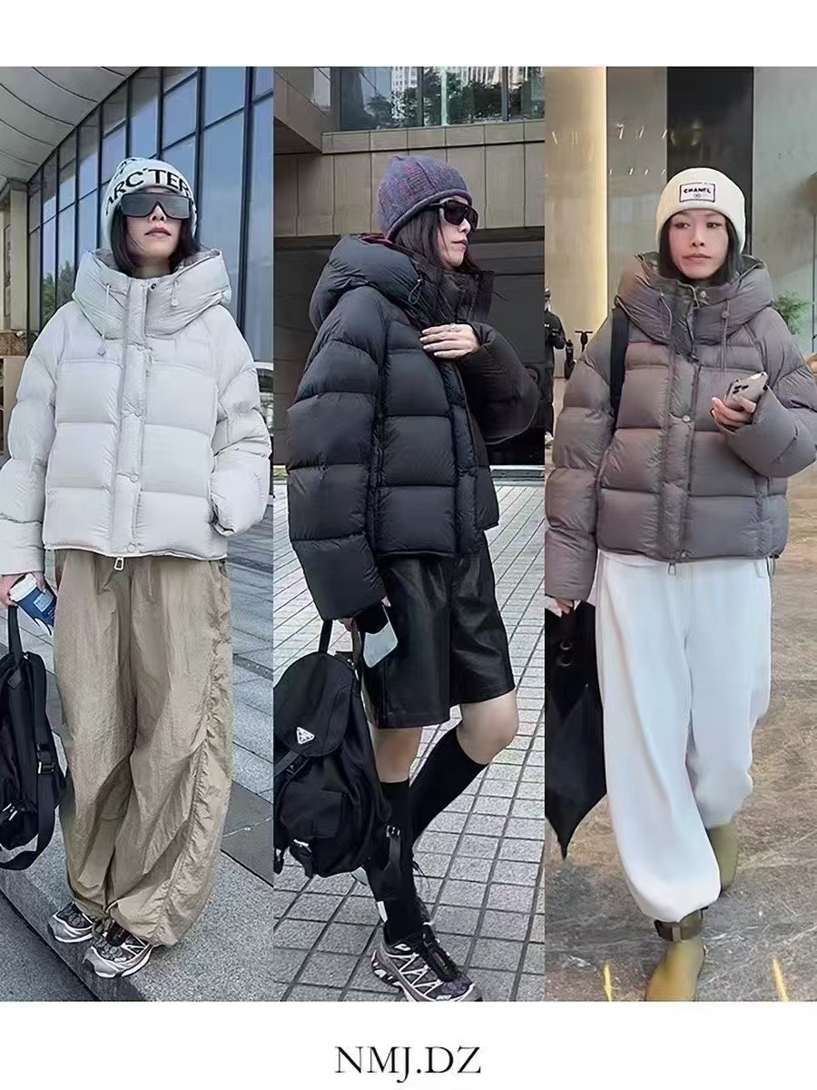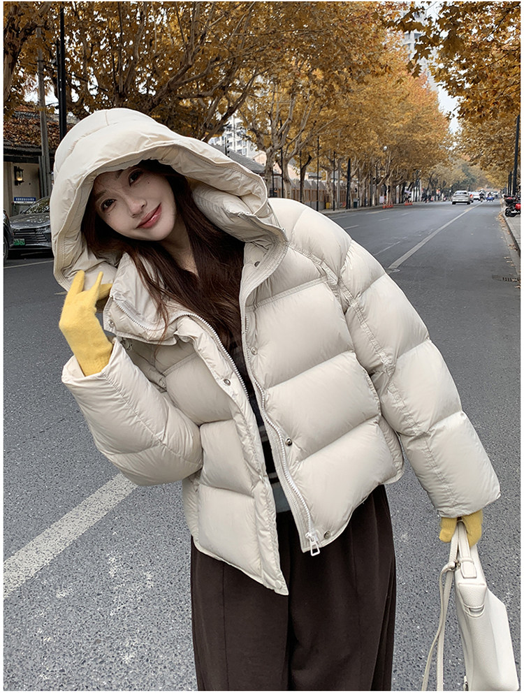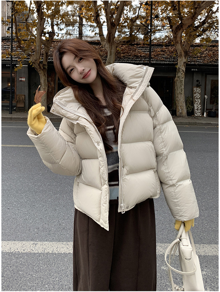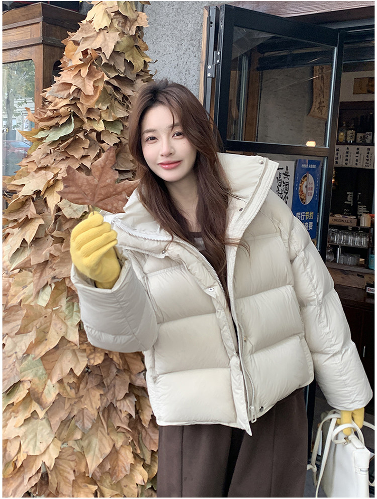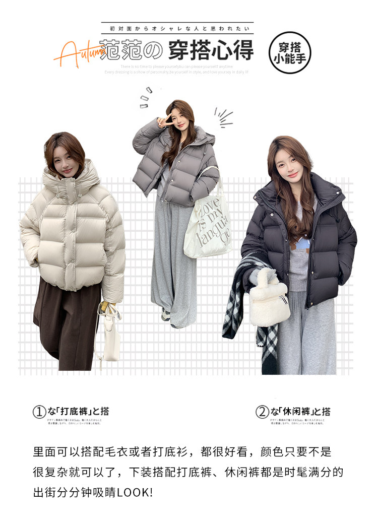 云朵泡芙羽绒服女白鸭绒短款小个子加厚面包服平湖羽绒服流行外套